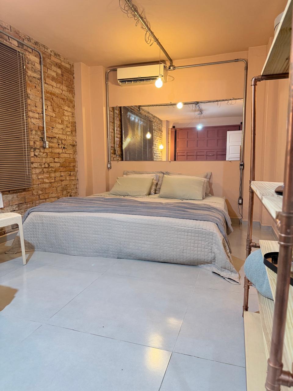 Loft: quarto, sala, cozinha e banheiro