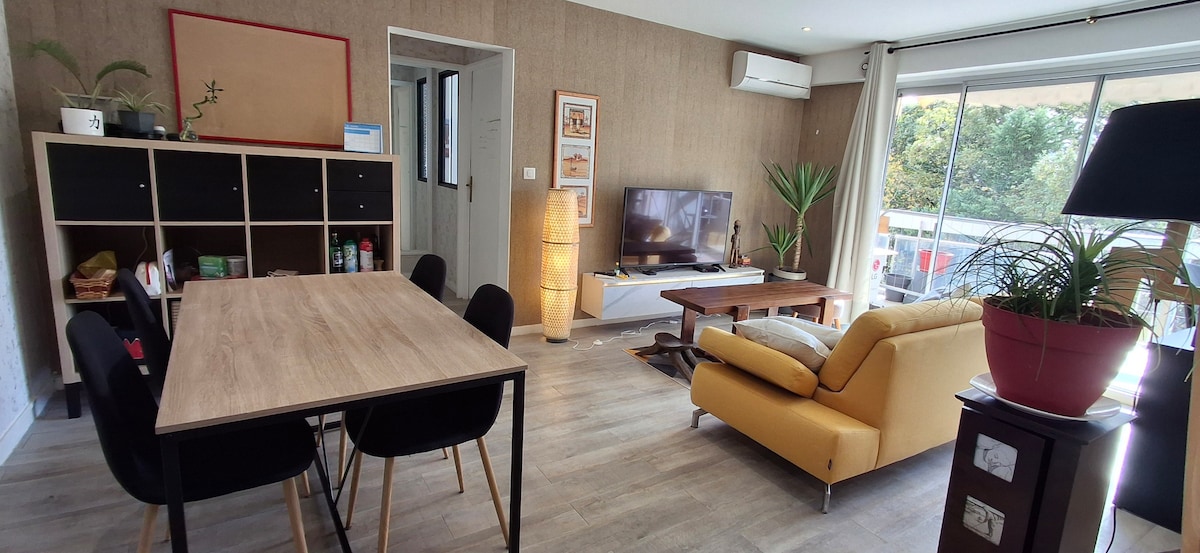 Hlavní rezidence k dispozici. Atypický apartmán pod střechou s viditelnými trámy, 3 pokoje, 55 m², obývací pokoj s otevřenou kuchyní, 30 m², světlý, dvě střešní okna s okenicemi. Má dvě ložnice, ideální pro odpočinek mezi mořem a horami. Ideální pro milovníky přírody a klidu. Nachází se 20 minut od pláží a hor. Snažím se, aby byl váš pobyt co nejpříjemnější, neváhejte se mě zeptat na cokoliv.