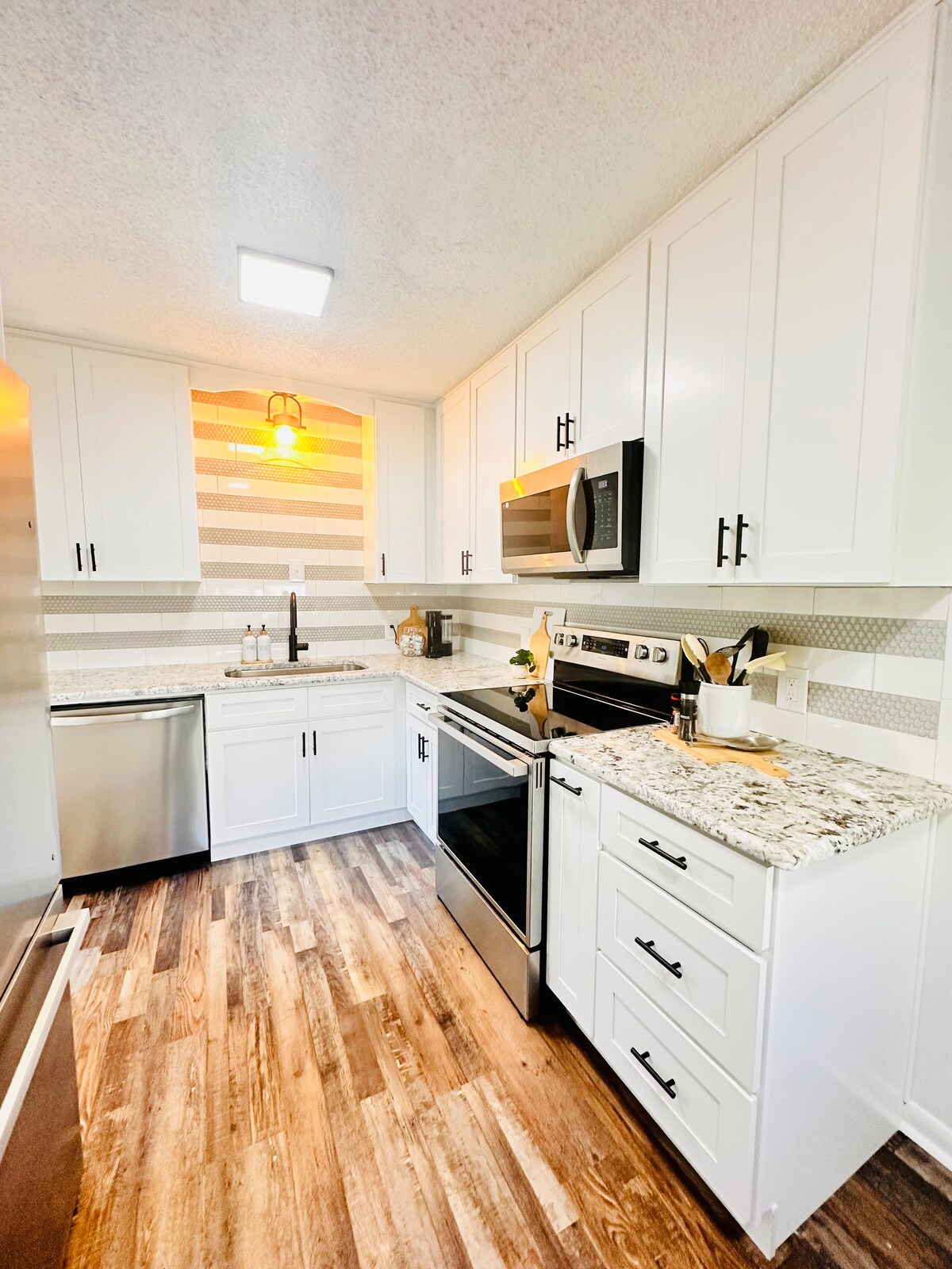 Výhodná poloha ve městě. Užijte si klenutý obývací pokoj, jednu ložnici, jednu koupelnu ve vile vyzdobené v industriálním stylu, od dřevěných pracovních desek z recyklovaných podlahových prken s ocelovým lemováním až po posuvné dveře stodoly. Vše, co potřebujete, aby byl váš pobyt v Sulphuru co nejpříjemnější za rozumnou cenu. Jste blízko rekreační oblasti Chickasaw (Národní park Platt), jedinečného centra města, uměleckých center a kasin, stejně jako několika dobrých restaurací.