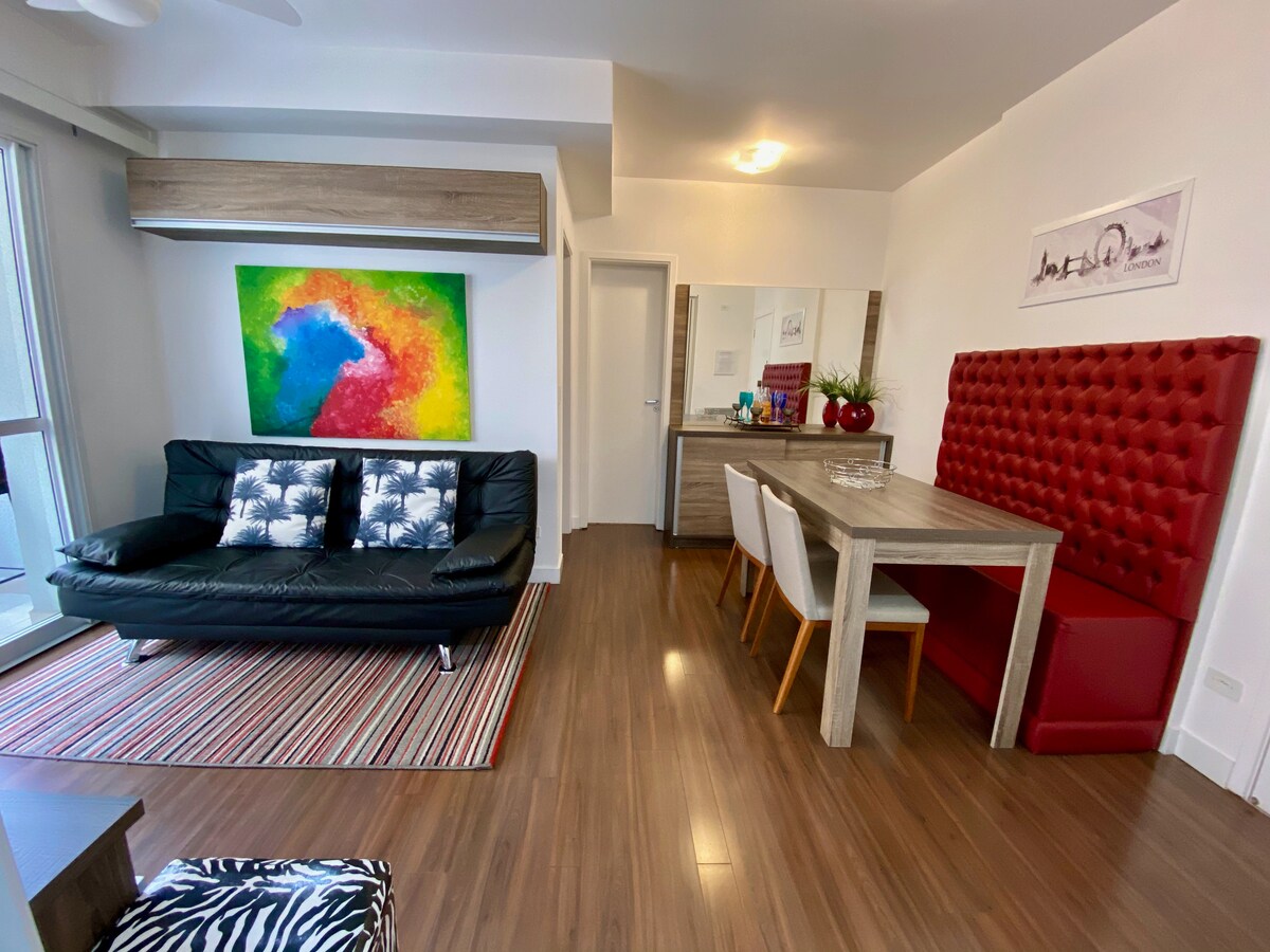 Moderní studio v Rebouçasech, 5 minut od Mercado Municipal, Shopping Estação a v blízkosti kaváren a barů. Snadný přístup: 10 minut na autobusové nádraží, 25 minut na letiště. Klimatizace + topení; plynová sprcha; coworking; 400 Mb Wi‑Fi + stůl; manželská postel s hotelovým ložním prádlem + zatemňovací žaluzie; vybavená kuchyň; chytrá TV se streamováním; samoobslužný check‑in 24 hodin denně; prádelna a posilovna v budově.