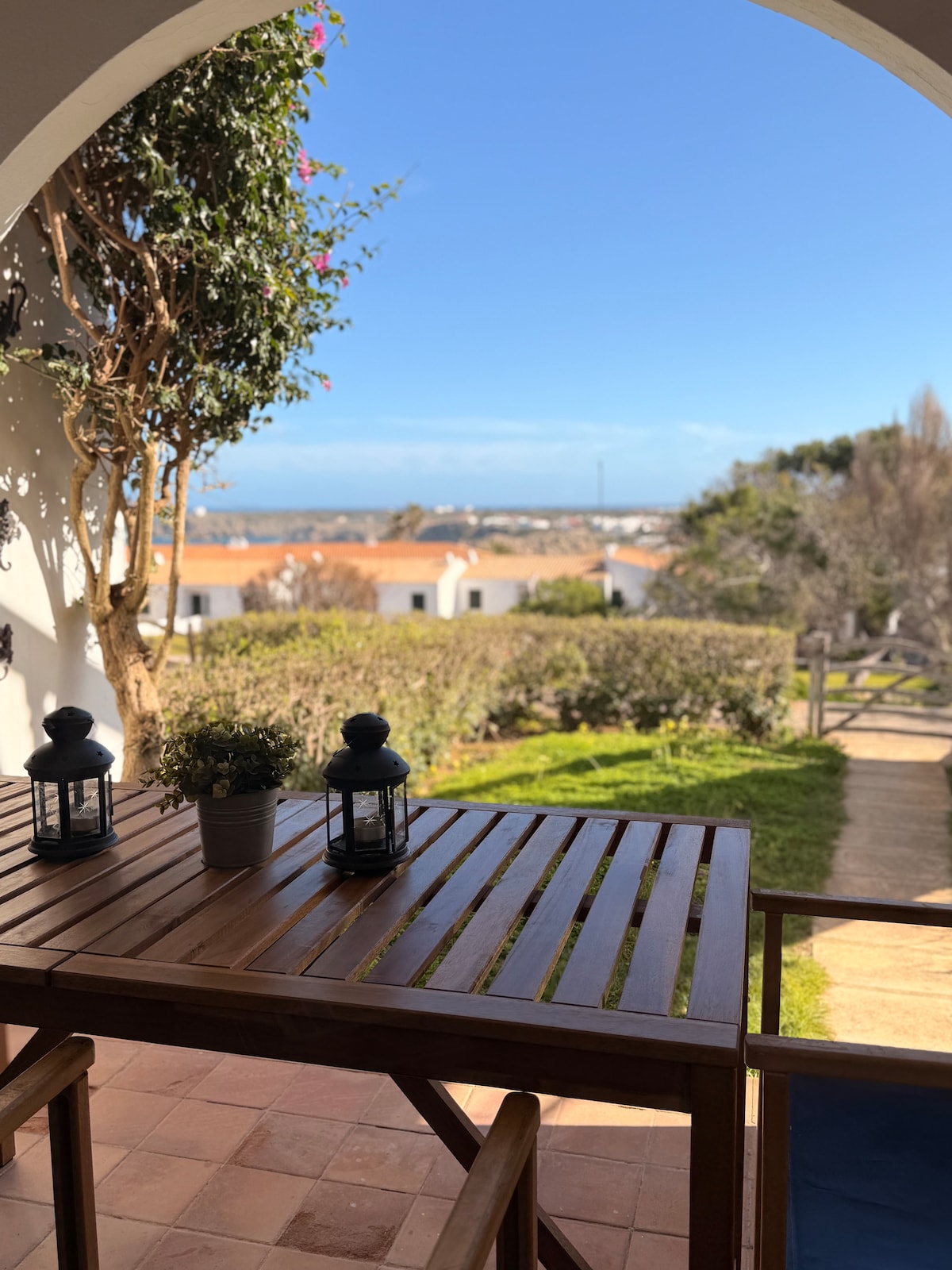 Z terasy můžete vidět typické bílé menorkinské domky na plážích Fornells, které jsou obklopeny mořem, a v pozadí mys Cavallería a jeho impozantní maják. Idylické místo, kde můžete obdivovat nádherný panoramatický výhled na moře; skutečná báseň pro oči, která se stává jedinečnou zejména při západu slunce. Apartmán se nachází pouhých 5-10 minut chůze od pláže Cala Tirant.