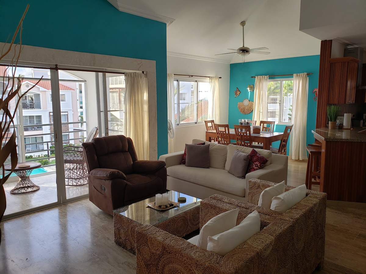 Tropický byt. Výhled na bazén. Pěšky dojdi na pláž Bávaro.