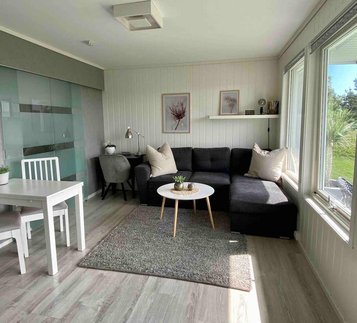 Útulný a dobře udržovaný byt v jednom obydlí s výhledem na moře a soukromou terasou. Pěkná lokalita v srdci klidného stavebního pole. Dobře vybavený TV, Wi-Fi, většinou kuchyňského vybavení a pračkou. Z důvodu pracovní situace jsme se ubytovali do 17:00, ale můžeš se zeptat, zda nechceš dřívější příjezd. 300 m do obchodu a autobusu. Autobus jezdí přibližně každých 30 minut do Arendalu/Grimstadu/Kristiansandu 2 km do krásné Buøya s několika skvělými plážemi. Společný vchod a chodba, vlastní uzamykatelné dveře.