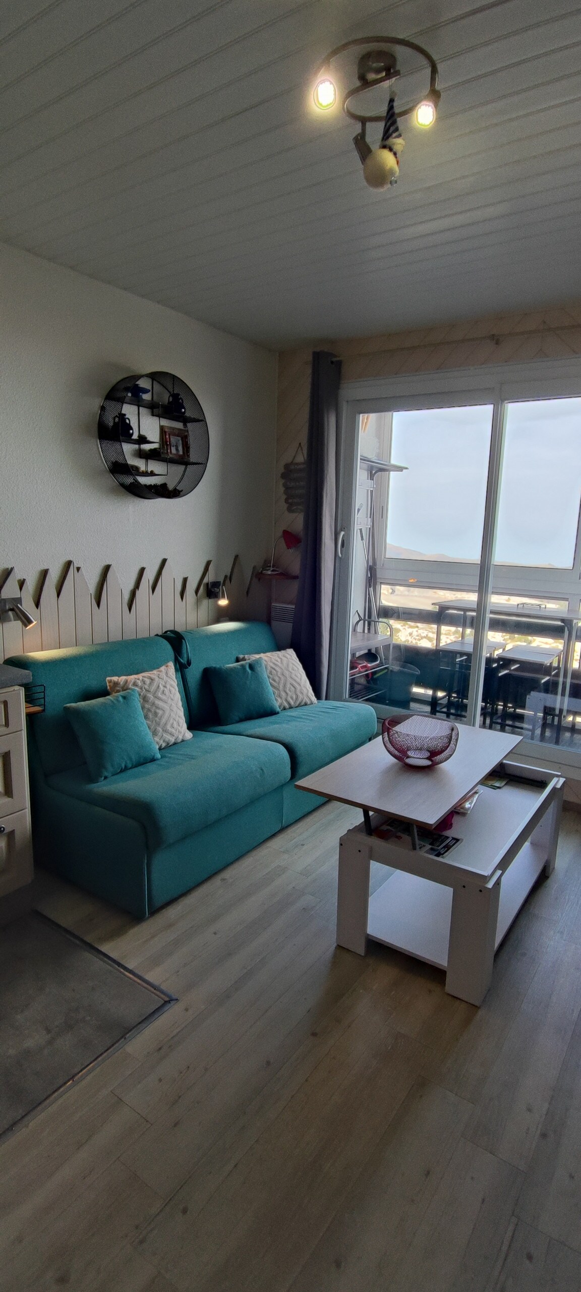 Apartmán s balkonem a nádherným výhledem na sjezdovky. Přímý přístup do nákupní galerie a na sjezdovky výtahem, vše pěšky a v blízkosti GR10. 23 m2 ideální pro 2 dospělé a 2 děti (nebo 4 dospělé), nachází se v rezidenci Super Arlas v 5. patře. Příjemný obývací pokoj s kuchyní, TV, mikrovlnnou troubou a troubou, varnou deskou, lednicí, kávovarem a rychlovarnou konvicí. Rozkládací pohovka 160 + 2 lůžka 90. Přikrývky a polštáře jsou k dispozici. Místnost na lyže.