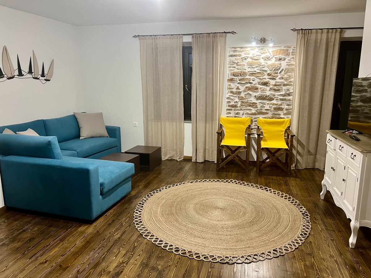 Útulný a moderní byt v centru Argalasti, protože se nachází jen sto metrů od centrálního náměstí vesnice. Apartmán se nachází v prvním patře, má ložnici s manželskou postelí a pohovkou, která se změní na postel v obývacím pokoji. V domě se mohou ubytovat až čtyři osoby. U apartmánu je k dispozici bezplatné parkování. Prostředí je přívětivé jak pro páry, skupiny přátel, tak pro rodiny s dětmi!