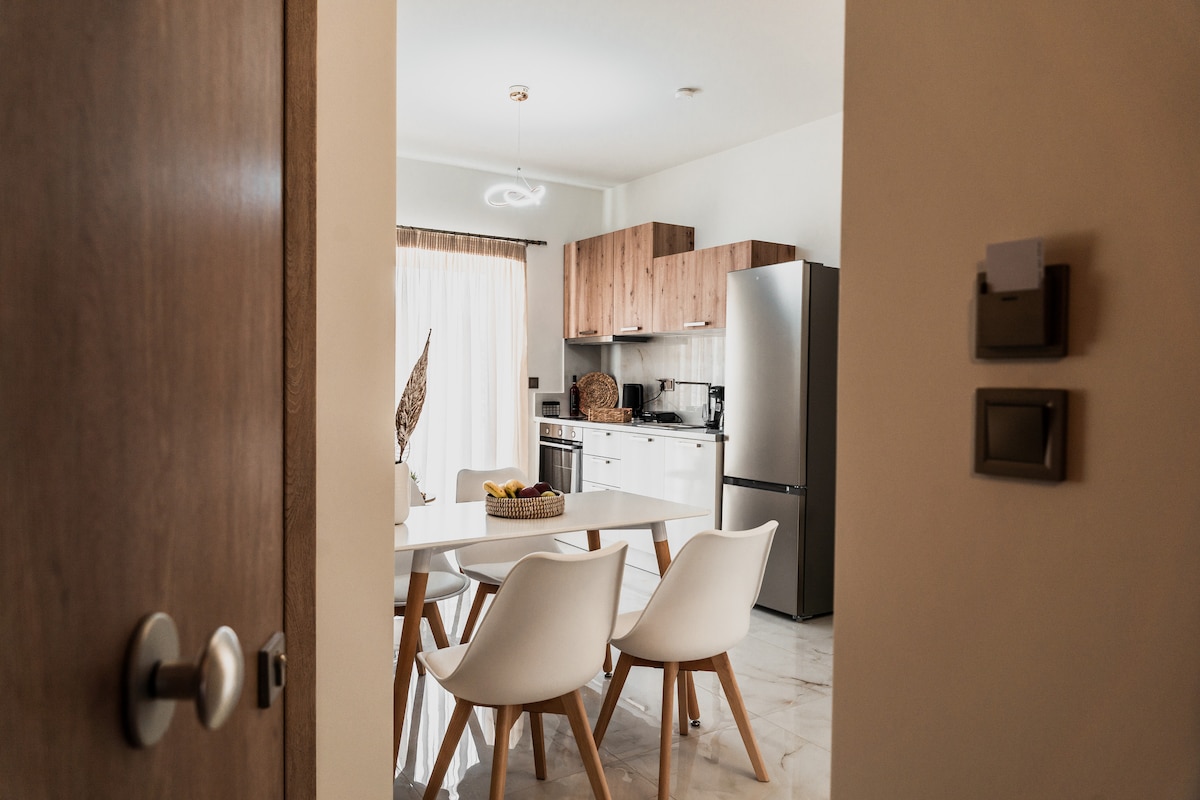 Apartmán je přízemní chladný prostor o rozloze 29 m² se samostatným vchodem do rodinného domu se zahradou, který se nachází na kopci přímo ve vesnici Drepano. Vzdálenost od moře je 2 minuty autem nebo 10 minut pěšky. Vzdálenost od hlavního náměstí vesnice je 4 minuty pěšky. Nachází se 10 km od Nafplia, 3 km od Vivari, pěkné rybářské vesničky s mnoha rybími tavernami, 29 km od starověkých Mykén a 29 km od antického divadla v Epidauru.