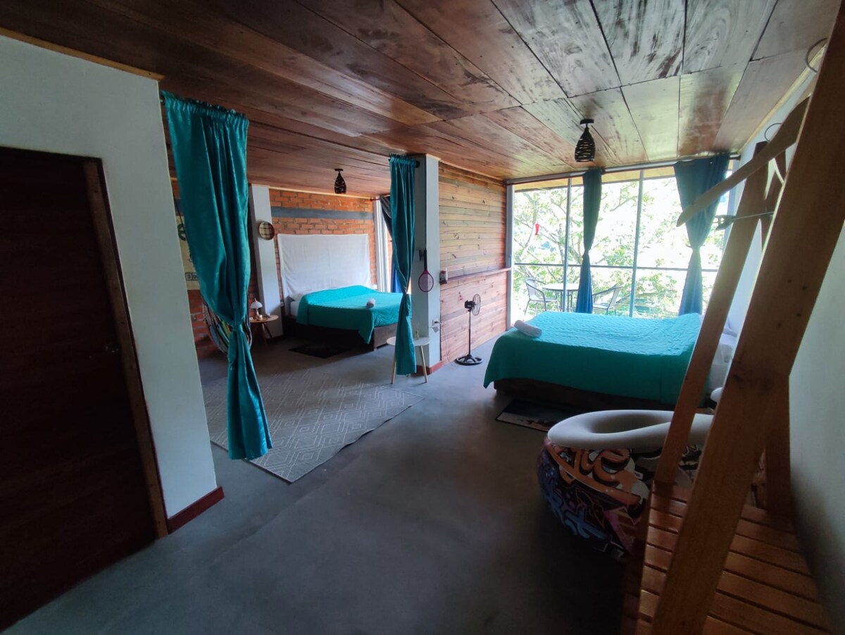 SUNSET SERENATA, rajské místo, kde se můžeš odpojit od shonu každodenního života a ponořit se do klidu přírody. Představte si, že se probouzíte za zvuku zpívajících ptáků a jejich melodii si můžete užívat celý den. Je to prostě okouzlující. Kromě toho je zde možnost účastnit se aktivit, jako je pozorování ptáků, návštěva kávové a kakaové farmy, turistika nebo koupání v řekách a vodopádech. Jsme jen 1,5 km od města nebo 30 minut pěšky.