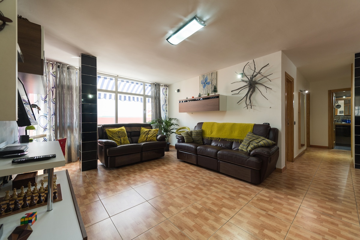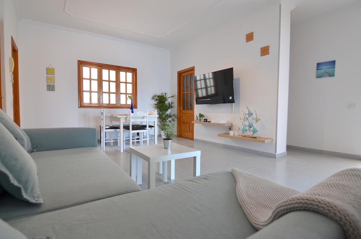 Útulný byt ideální pro velké rodiny, dva páry nebo skupinu přátel. Objevte Gran Canarii z tohoto světlého apartmánu s terasou a výhledem na moře. Turistické trasy, cyklistika a vodní sporty v okolí. Ideální pro dobrodruhy a/nebo ty, kteří hledají klid. 3 pokoje, 2 koupelny, rychlá wifi. Dobré spojení s letištěm a dalšími klíčovými body. Přivítáme vás ovocem, nápoji a doporučeními restaurací a autentických zákoutí. Venkovní prostor s bezplatným parkováním