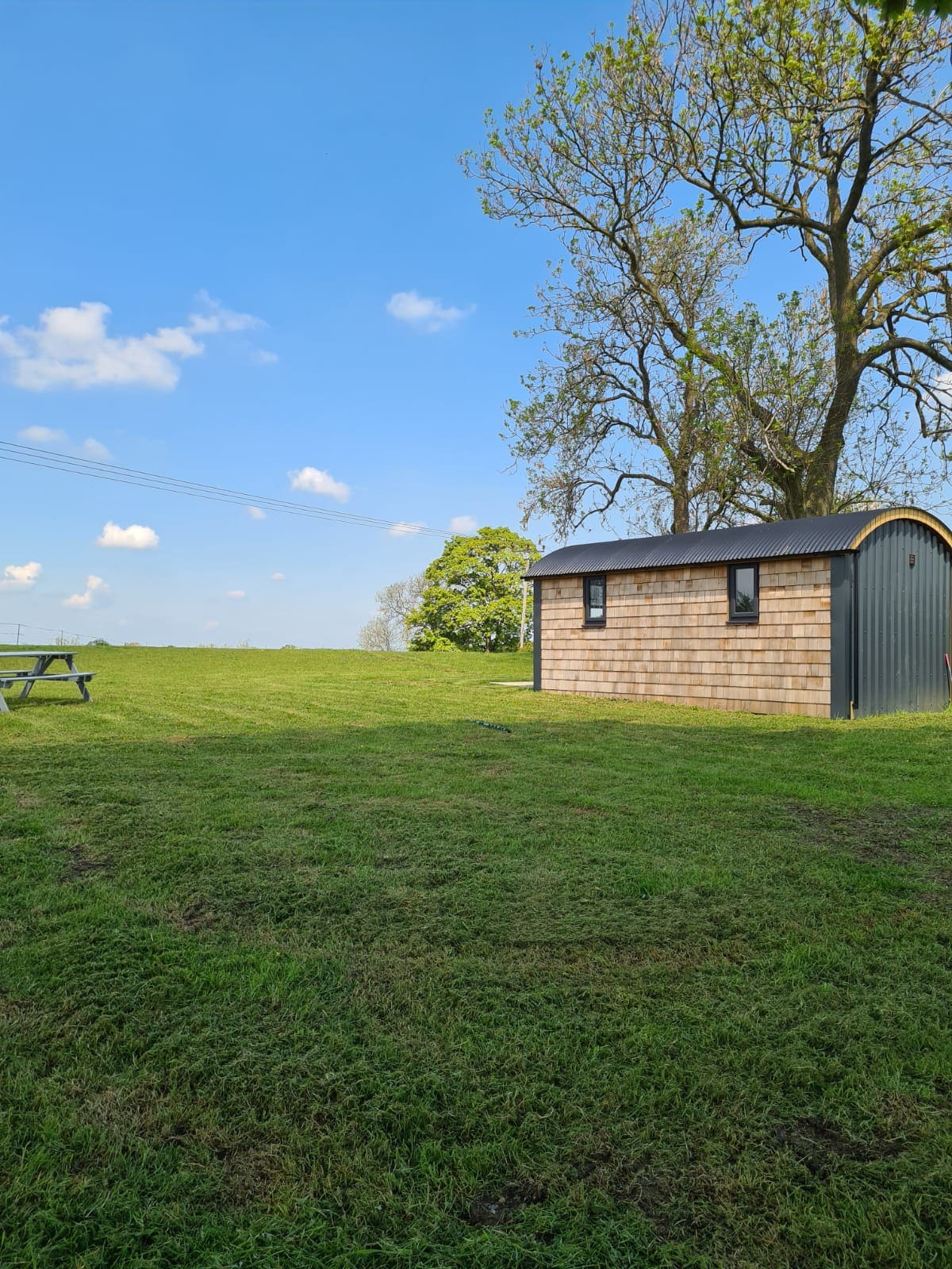 hi, here we have an outstanding 5*glamping hut; currently also available for those needing an isolation, or a private quiet work space ; very good wifi and desk??, purpose built and nestled in the corner of a quiet private field , with amazing views in to the sunset to the west, and panoramic from there , for those wanting a, private, quiet , on your own experience , except for the sun moon trees and grass , and for the lucky , rabbits, deer, foxes , owls , from a very quiet place...