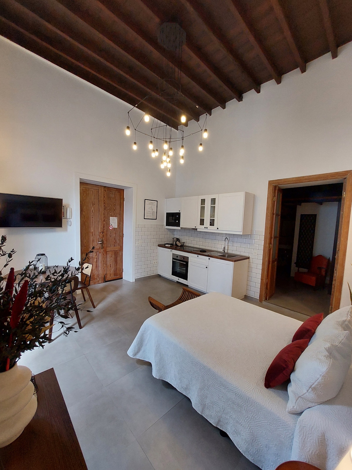 V Casa Lela si můžeš užít apartmán s vintage atmosférou, ale s moderním vybavením: televizí, internetem a klimatizací. V hlavní místnosti najdeš multifunkční prostor: ložnici s manželskou postelí, která se otevírá do kuchyňsko-jídelního koutu, a balkon s vysokými dřevěnými stropy. V samostatné koupelně je sprcha, skříň a komoda. V podkroví se nachází pracovní prostor, do kterého se dostaneš po dřevěném schodišti. Užij si pobyt.