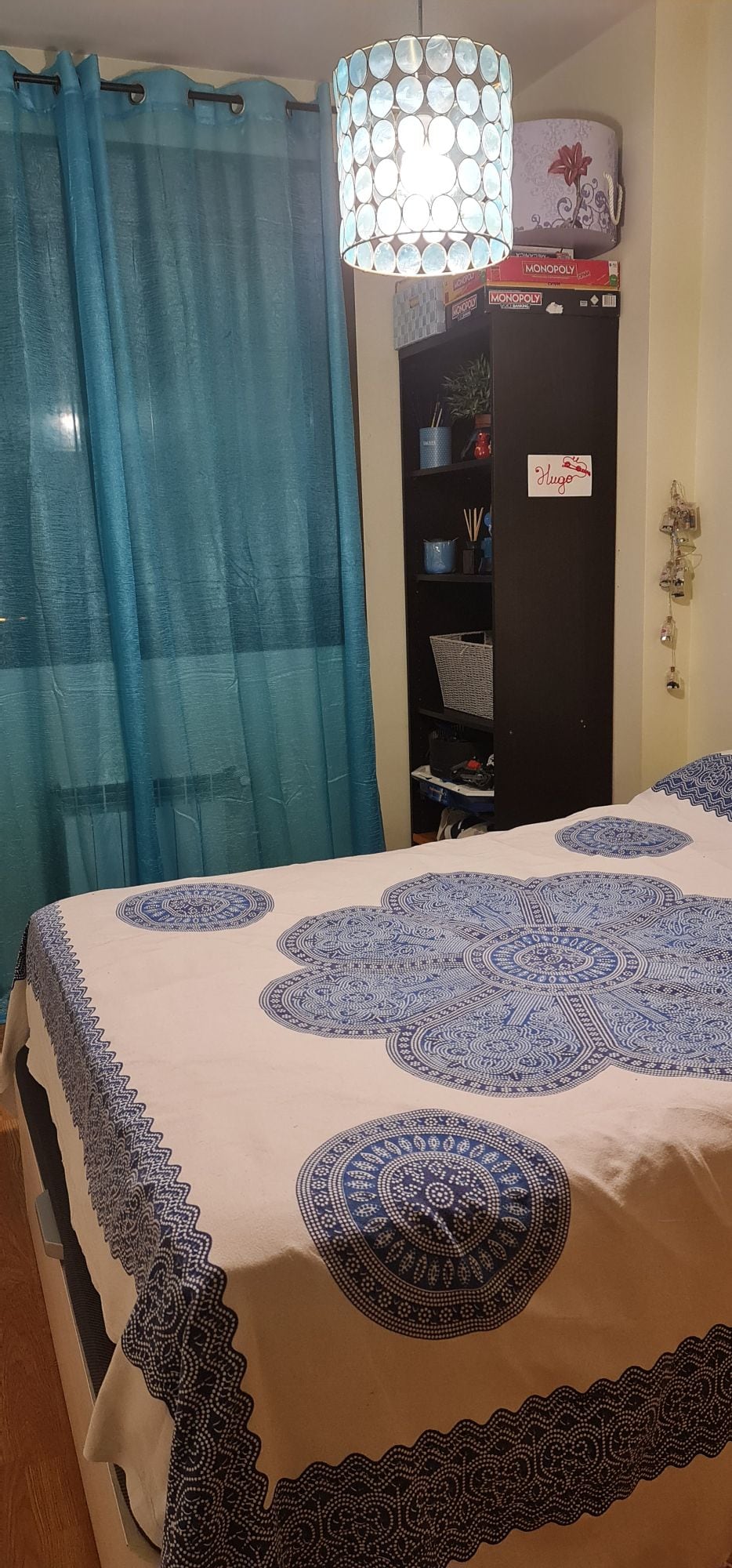 Es una casa adosada, a compartir con los tres miembros de la familia. Y otros posibles huéspedes. Ofrecemos una habitación individual, ideal para estudiante o profesional. Cuenta con un amplio escritorio, estantería, armario, mininevera, calefacción central y aire acondicionado. Cuarto de baño a compartir con otro huésped . La habitación cuenta con pestillo interior, no tiene cerradura.