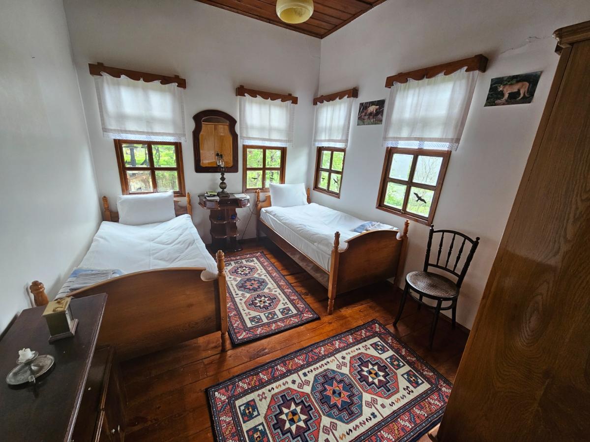 Doğanın ortasında müstakil Tarihi Konak içeri iki ayrı yataklı çok özel oda , şömineli oturma alanı ,cumbalı oturma alanı ortak banyo ,ortak mutfak mevcut.