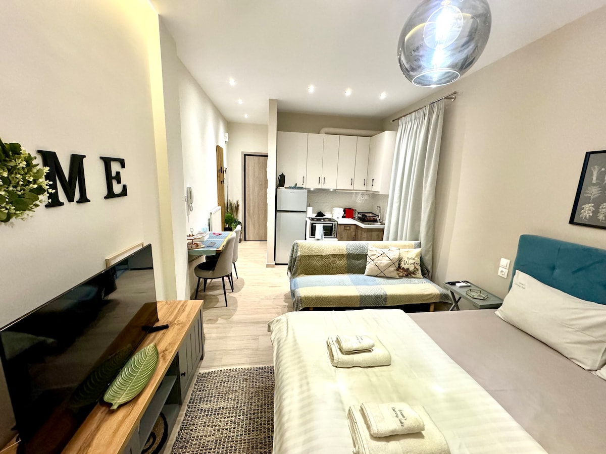 Nádherné, útulné a pohodlné studio v suterénu (ložnice, obývací pokoj, kuchyň, koupelna, kancelář) v jedné z nejkrásnějších čtvrtí Larissy. Má individuální topení na zemní plyn a je vybaveno veškerým moderním komfortem (kabelová televize, internet 100 Mbps atd.). Stojí za zmínku, že veškerý nábytek a spotřebiče jsou zcela nové a byly vybrány s vášní výhradně tak, aby splňovaly potřeby a požadavky návštěvníků Airbnb. Rádi vám nabídneme příjemný pobyt!