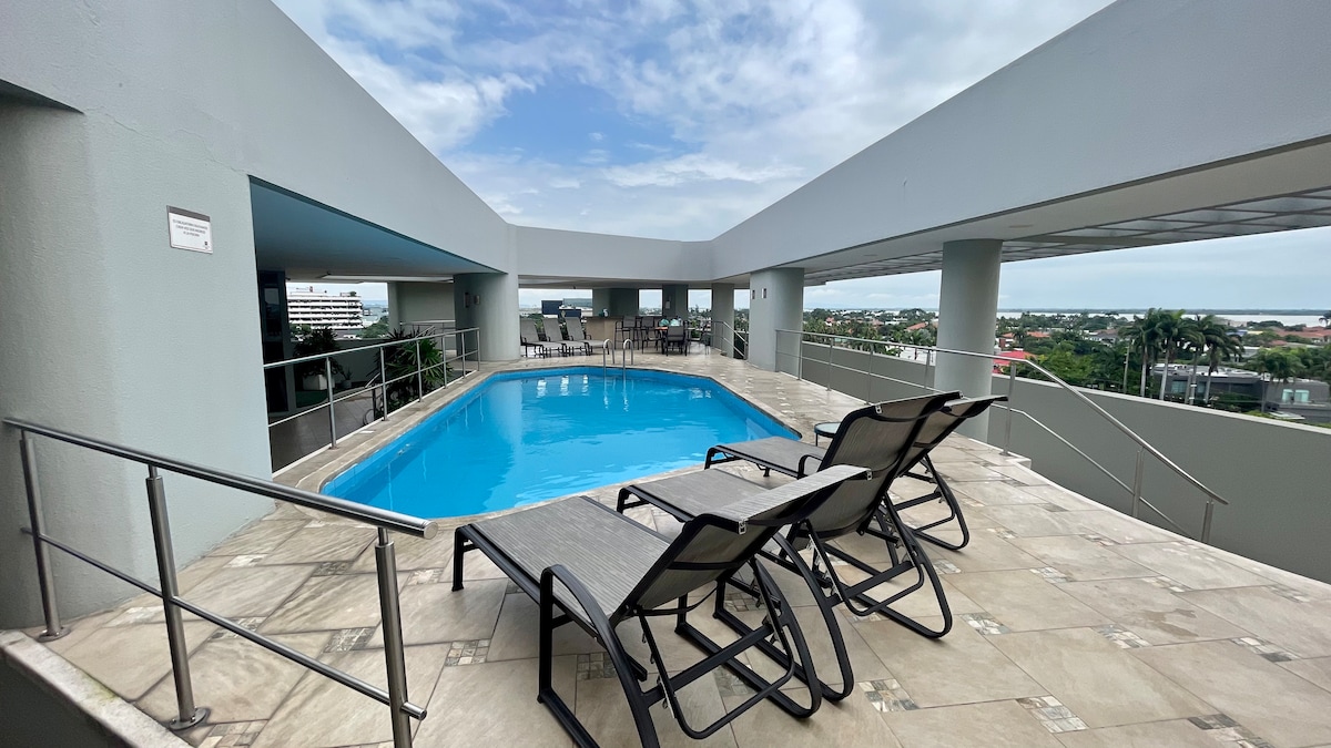 Zařízený apartmá, ideální pro 2 až 3 osoby, s vynikající polohou. Má všechny služby, abyste se cítili jako doma a mohli si užít příjemný zážitek. *Služby: - TV s Netflixem a YouTube - Vysokorychlostní wifi - Bazén - Posilovna *Lokalita: Vedle Omnihospital (lékárna 24/7) Letiště 5 minut autem Před Mall del Sol V blízkosti kongresového centra. *Parkování: - Veřejné (zdarma mimo budovu) - Soukromé (8 až 10 USD za noc v závislosti na dostupnosti)