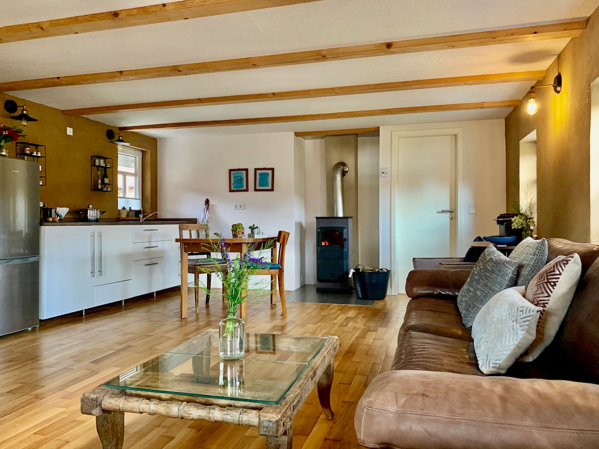 V malém dřevěném domě obklopeném hrázděnými domy v klidném centru vesnice si můžeš odpočinout a užít si přírodu nedalekého Frankovského Švýcarska. Díky ekologické dřevěné konstrukci připomínající půdní byt je tento byt jedinečný. Vytápí se kamny na dřevo. V koupelně a vedlejší místnosti je navíc podlahové topení. V zahradní části, která je chráněna před pohledy, máš k dispozici saunu, studenou sprchu s vanou, lehátka a jídelní kout. Okolí láká k četným outdoorovým aktivitám.