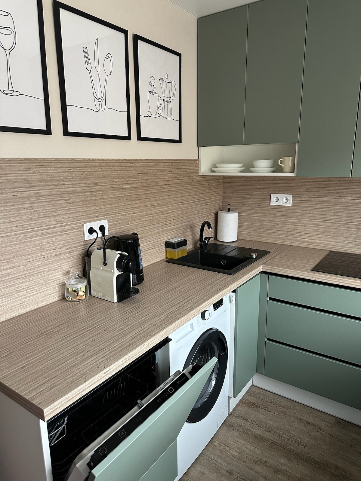 Toto stylové ubytování , hned po kompletní rekonstrukci, je dokonale navrženo tak, aby uspokojilo všechny tvé potřeby . Plně vybavená kuchyň s myčkou nádobí , troubou a mikrovlnnou troubou, filtrovanou pitnou vodou, rychlovarnou konvicí a dalšími nezbytnostmi. K tvým potřebám je také pračka, sušička a žehlička. Hlavní ložnice má manželskou postel King, velkou rohovou šatní skříň a přístup na balkon. Obytný prostor má velkou rohovou rozkládací pohovku, ideální pro pár . Blízkost obchodů a veřejné dopravy, 7 minut jízdy do centra