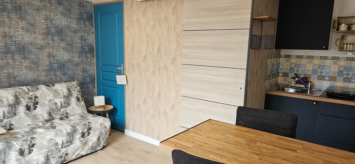 Malý apartmán, soukromý přístup, 17 m2, studio s vybaveným kuchyňským koutem, malé spotřebiče, vše pro vaření, pračka, sprchový kout s toaletou, malá soukromá terasa, ložní prádlo a ručníky, TV, WiFi, reverzibilní klimatizace. Jediné, co musíš udělat, je odložit zavazadla... Nachází se v srdci vesnice, všechny obchody a zdravotníci v okolí. Ideální pro pár, na dovolenou, do lázní v Balaruc les Bains...