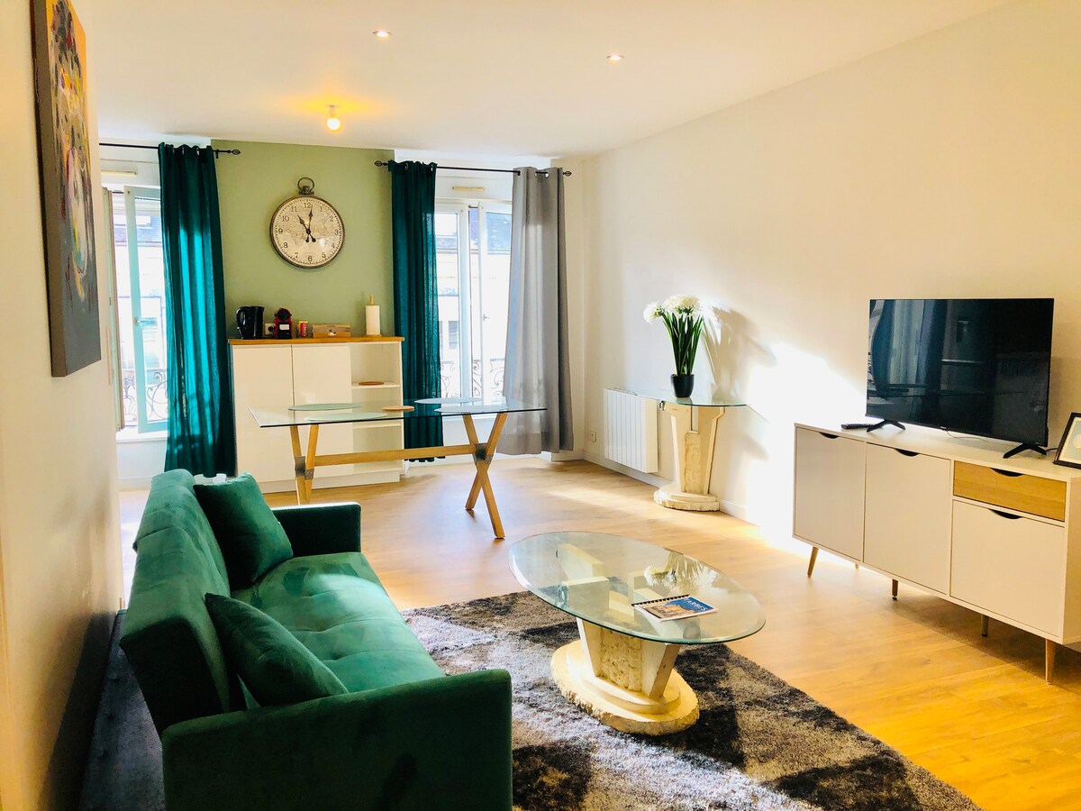 Byt v 1. patře domu, v klidné ulici. 2 pokoje a krásný obytný prostor, světlý, vybavený rozkládací pohovkou pro 2 osoby, plně vybavená otevřená kuchyně. 100 m od vchodu do zahrady Massey, pozoruhodné zahrady🌲, 5 minut pěšky od centra města, 7 minut od nádraží, čtvrť Arsenal (CGR, noční bary, multisportovní komplex - l'Usine, školicí střediska). Stáhněte si aplikaci TLP mobilités pro vaše cesty (letiště, vlakové nádraží, V případě jakýchkoliv dotazů mě neváhejte kontaktovat.