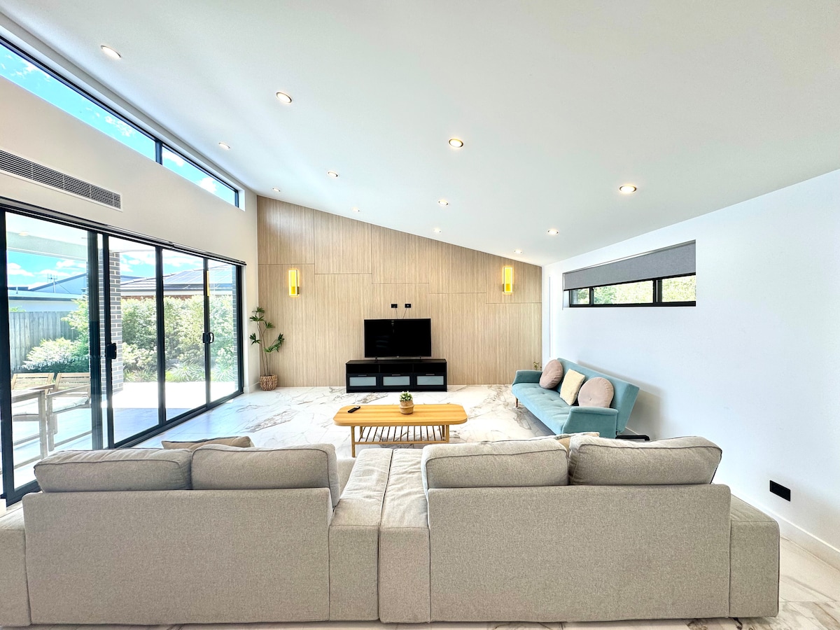 Moderní, plně samostatný dům se 2 ložnicemi, který pojme 4 osoby v prostředí vhodném pro rodiny. Nachází se v klidné lokalitě a poskytuje dokonalý únik z Canberry. K dispozici je bezplatné zabezpečené parkovací místo pro jedno vozidlo a další bezplatné parkování na ulici. Elektrická zásuvka pro nabíjení elektrických vozidel je k dispozici na vyhrazeném parkovacím místě za příplatek na vyžádání. - 15 minut na letiště - 20 minut do CBD - 30 minut do lesa Corin - 2 hodiny do zasněžených oblastí NSW a na jižní pobřeží