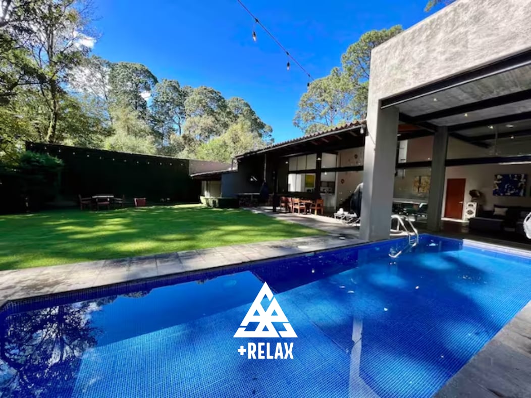 The house is located at Avándaro in Valle de Bravo. It is close to a park called Velo de Novia that is famous for its waterfall as well as from Golf Club Avándaro . The house has many outdoor spaces that guests may enjoy that include: gardens, a terrace, a pool (can be heated up). Additionally, the house includes the service of 2 people that will be available to help you with cooking.