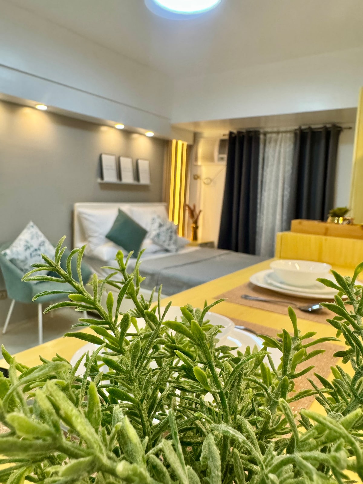 A thoughtfully furnished studio condo conveniently located nearby Cebu's major commercial & business districts - IT Park, Ayala Center & BanTal Corridor. So whether you're visiting Cebu for business or leisure, you're sure to be accessible to your destinations. Take comfort in our homy condo with a great view of the sunrise & the fairways of Cebu Golf Club. Connected to fiber internet, you can still work on-the-go or binge on your favorite Netflix. It will be our pleasure to host you! :)