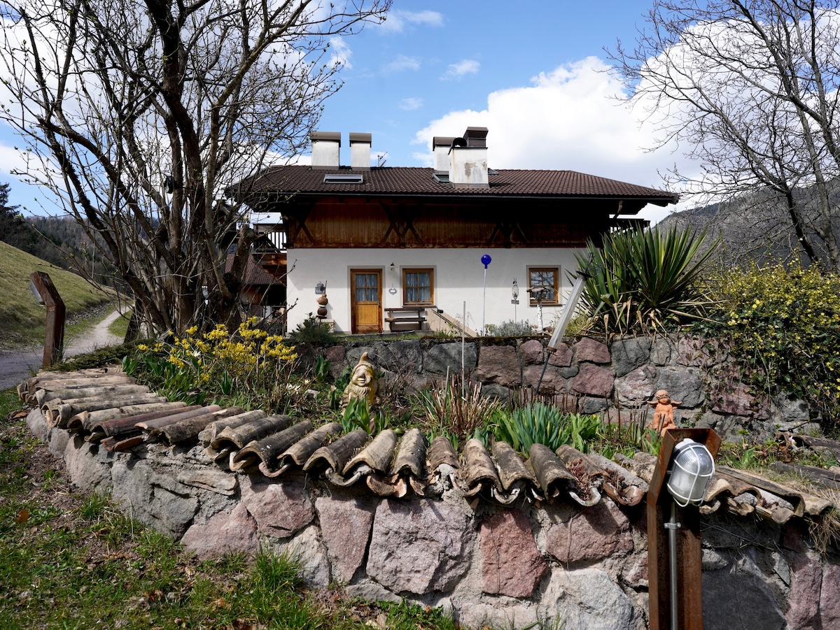 Dům se nachází ve velmi klidné vysněné lokalitě v ovocných sadech údolí Etschtalu. Byt se nachází v 1. patře, má 120 metrů čtverečních a pojme až 6 hostů. Bolzano je 10, Merano 20 a lyžařské nebo turistické oblasti Dolomitů 40 minut daleko. Za rohem jsou cyklostezky a turistické trasy před domem. Hostům jsou k dispozici 2 parkovací místa v uzavřeném dvoře, každé další se účtuje 10 €/den