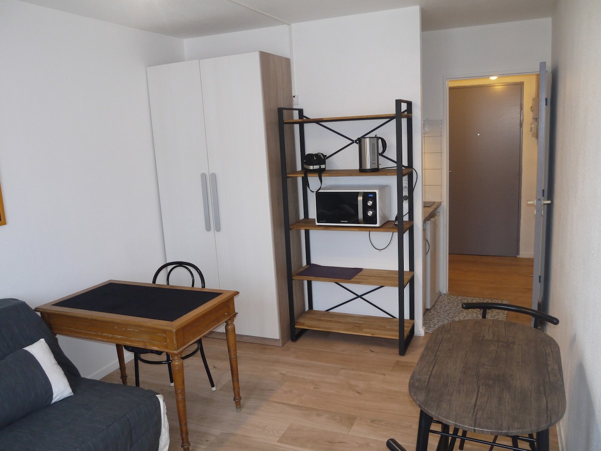Vítejte v srdci Villeneuve-les-Avignon v Gardu. Doporučujeme vám objevit toto velmi světlé studio s panoramatickým výhledem, které bylo zrekonstruováno v roce 2024. Nachází se ve 2. patře půvabné rezidence s bezpečnostními prvky, obklopené zelení, s bezplatným parkováním. Můžete si užít klid této rezidence, která se nachází také 2 minuty chůze od historického centra. Ideální poloha (autobus, restaurace, pekárny, minimarket a obchody v pěší vzdálenosti)