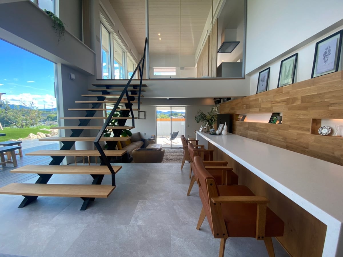 Mineyama Green Villa, near Takamatsu, offers a serene winter retreat. Surrounded by greenery, this private 400-tsubo villa features seasonal gardens, birdsong, and an open deck for relaxing moments with family or friends. Located near the summit of Mineyama hill, just minutes from the city center, it provides complete privacy with no neighboring houses nearby. Guests can enjoy blooming flowers, fruit trees, and tranquil views year-round—an ideal escape from everyday life.