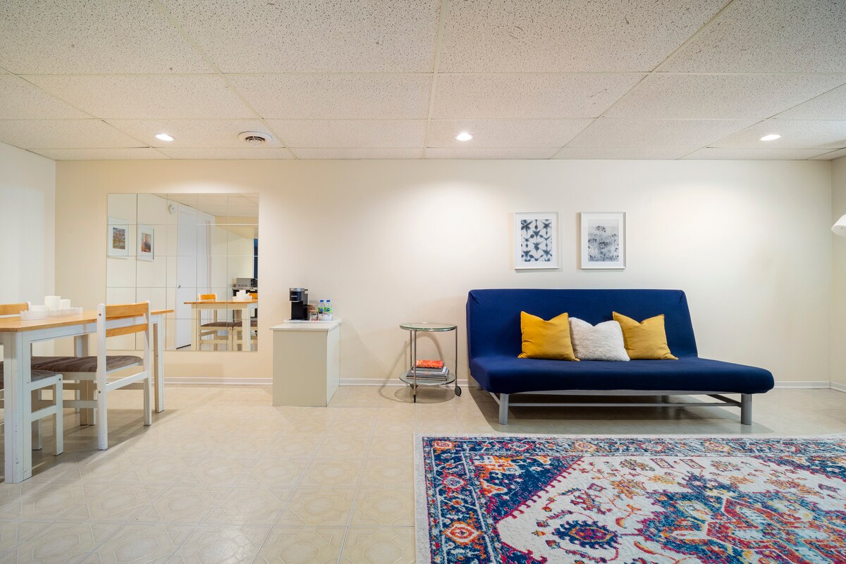 Tento útulný suterénní apartmá se nachází v klidné ulici jen pár minut chůze od parku Gatineau. Celý apartmá v suterénu je pro vás, je to světlý a útulný prostor se soukromým vchodem přes krásný dvorek. Odpočiňte si v pohodlné ložnici, soukromé koupelně, útulném obývacím pokoji s rozkládací pohovkou a kuchyňce (lednice, káva, mikrovlnná trouba, rychlovarná konvice, toustovač ** bez sporáku, bez mrazničky). Během pobytu si užijte široký výběr stolních her! CITQ#306481