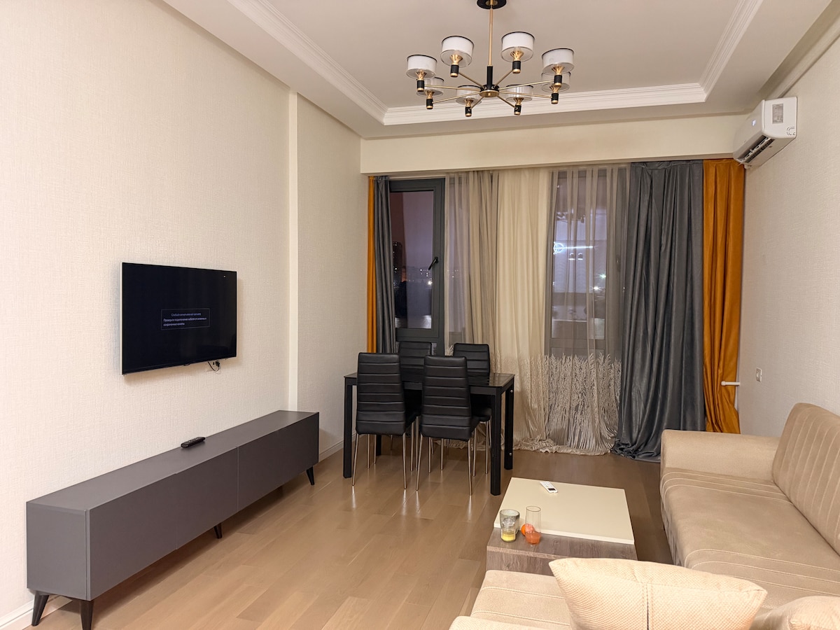 Vítejte v mém stylovém bytě v 9. patře s výtahem, který se nachází v nejcentrálnější a nejprestižnější části Baku. Nachází se pouhé 2 minuty od slavného okruhu Baku City Circuit a je obklopen památkami, luxusními hotely, nákupními centry a nábřežní promenádou. Z panoramatických oken a velkého balkonu si budete moct vychutnat úchvatný výhled na Kaspické moře, panorama města a celou trať Formule 1 – jako by se závod odehrával přímo před vašima očima.