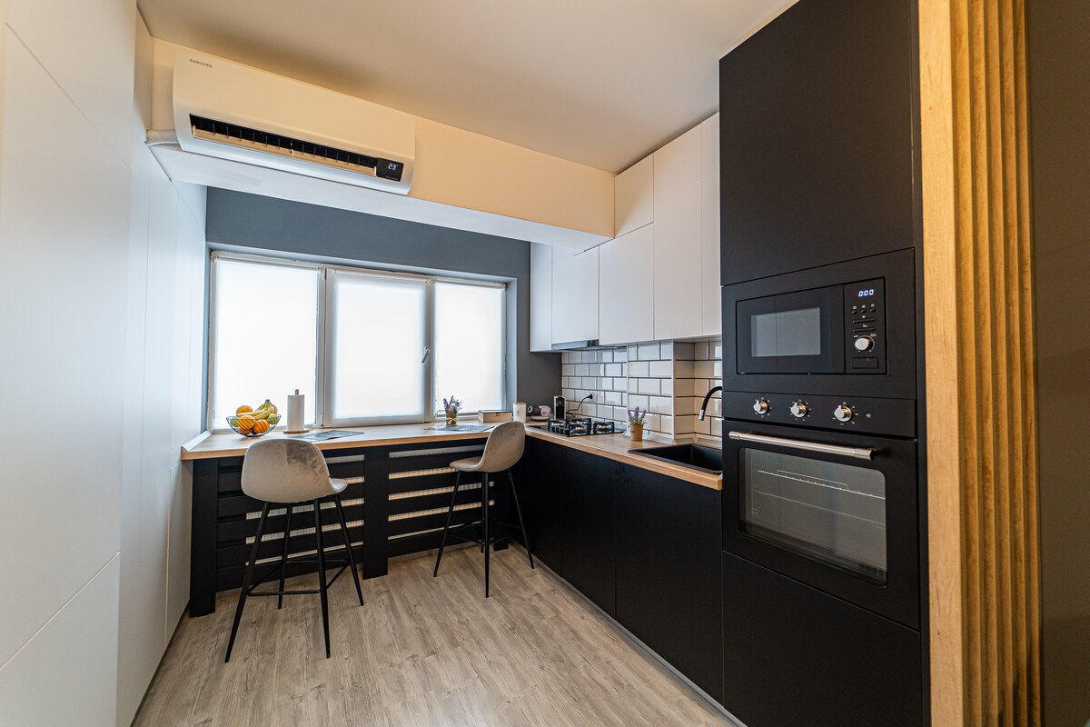 Toto nové, světlé a elegantní studio se nachází v jedné z nejvyhledávanějších oblastí Bacău. S tímto malým bytem vám nabízíme ideální možnost ubytování. V blízkosti se nachází nákupní centrum, supermarket, restaurace a kavárny, veřejná doprava. Studio má 2 pokoje a je vhodné pro maximálně 3 osoby. Je vybaven: Wi-Fi, klimatizací, kávovarem (káva je zdarma), pračkou, dobře vybavenou kuchyní a koupelnou, samoobslužným check-inem. Parkování je zajištěno.