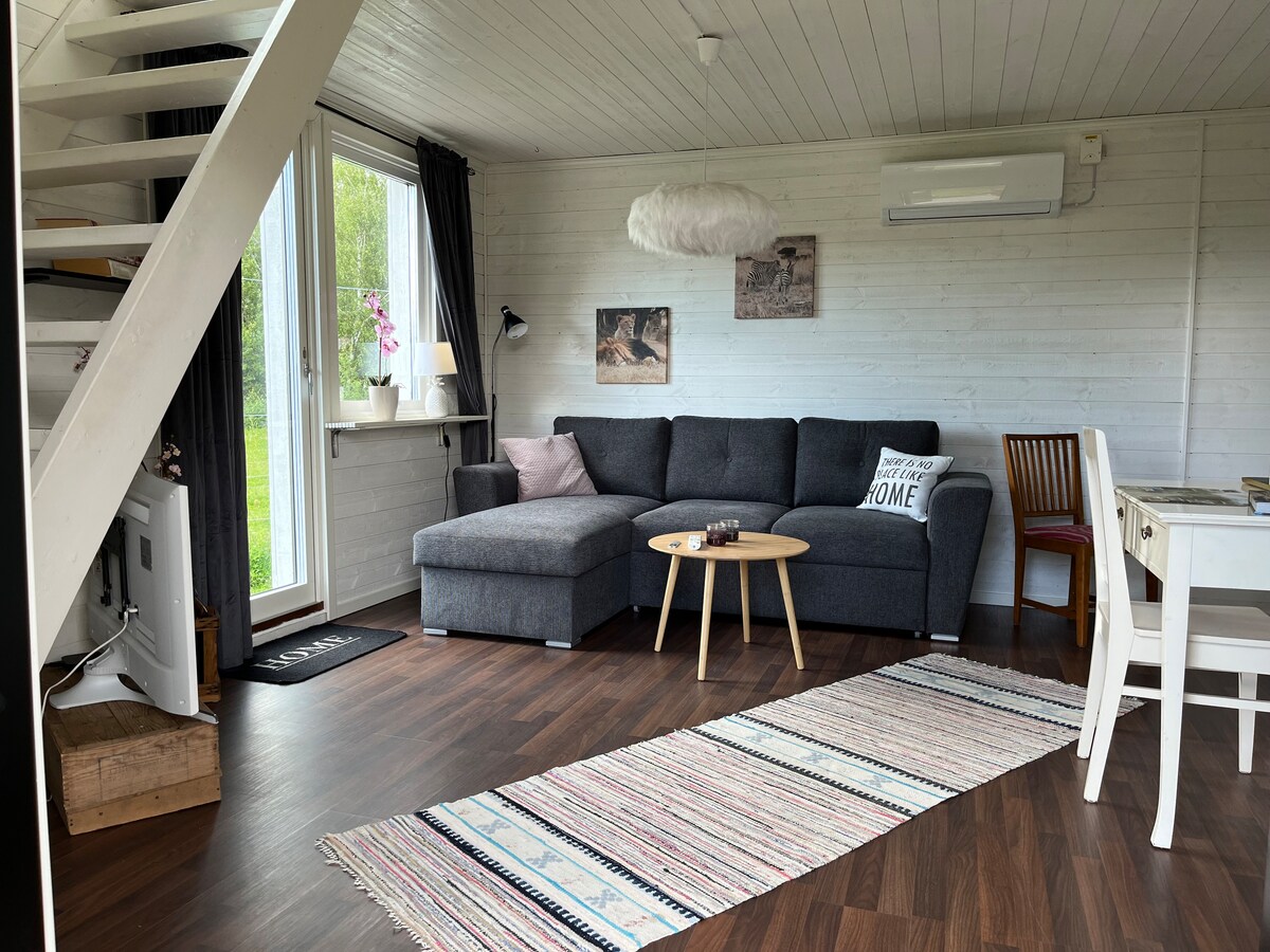 Nově postavená a pestře zdobená chalupa o rozloze 30 m ² dokončená na jaře 2021. Seaside location with partial lake view at Sjuhalla, 1.5 km outside Nättraby in Karlskrona's beautiful archipelago. Otevřený půdorys s kuchyní a obývacím pokojem. Rozložte kuchyňský stůl, abyste v případě potřeby ušetřili prostor. V obývacím pokoji je TV a rozkládací pohovka se dvěma lůžky. Prostorná koupelna se sprchovým koutem. Ložnice s manželskou postelí a šatní skříní. Spací podkroví s manželskou postelí. Zařízená terasa s částečným výhledem na moře a grilem.