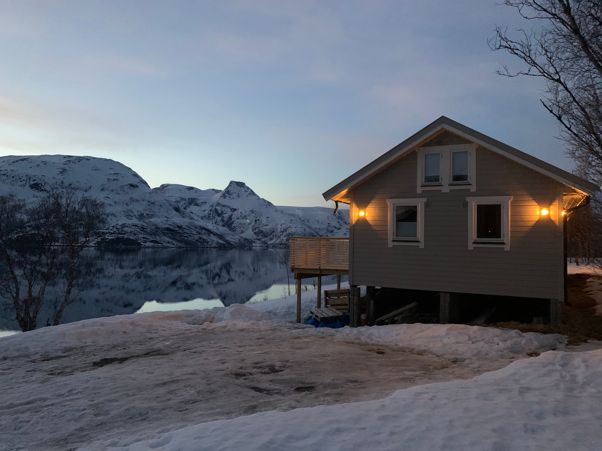 Objev arktické alpy Finnmarku v Jøkelfjordu! (Ledovcový fjord) Velmi malé světelné znečištění dává velký potenciál pro pozorování polární záře a velryby často navštěvují od října do ledna. Nic neslibujeme, ale šťastlivci je zahlédnou z teplé pohovky. Oblast nabízí vynikající lyžařské možnosti. Je to malebná jízda z Alty (1 h 15 min) nebo Tromsø (4 h 30 min), s přístupem po silnici až ke dveřím. Moderní chata s koupelnou s dlaždicemi a rychlou Wi-Fi. V případě jakýchkoliv dotazů nás neváhej kontaktovat