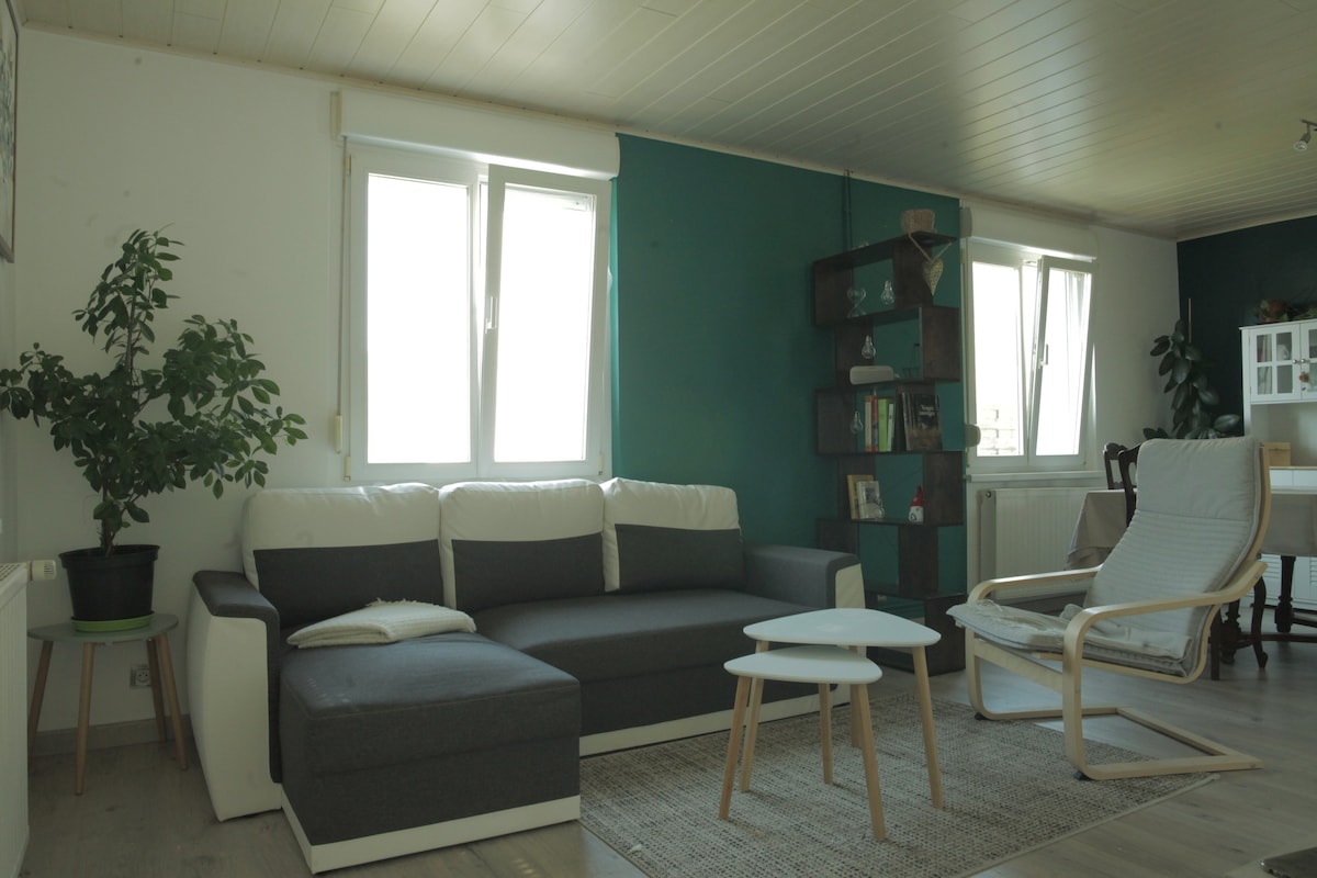 Kompletně zrekonstruovaný byt o rozloze asi 80 m2 s nezávislým vchodem. Bydlíme hned vedle, chalupa je součástí našeho domu. Jsme k dispozici pro jakékoli požadavky nebo zvláštní potřeby. Chata se nachází méně než 5 minut chůze od centra Niederbronnu a jeho termálních lázní.