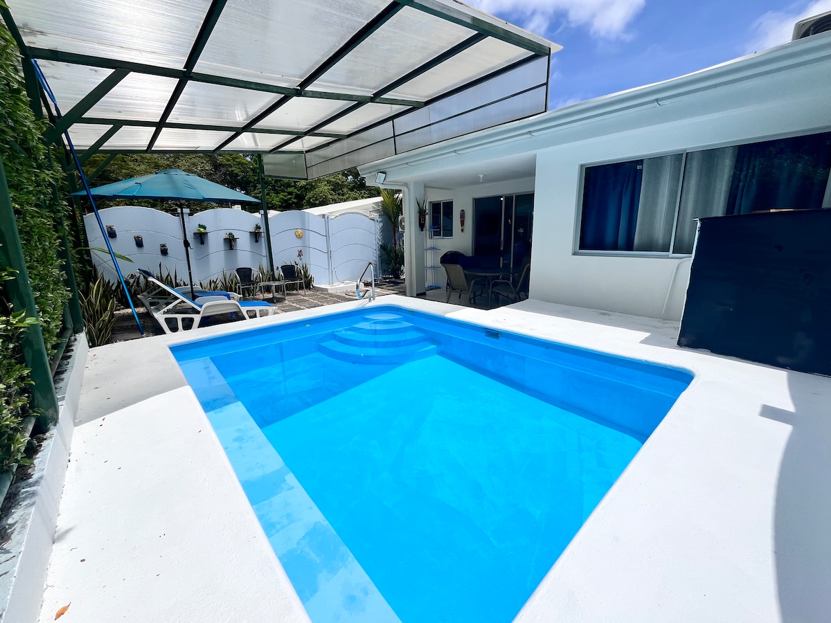 Tento nový dům, který byl vyvinut s moderním architektonickým designem, otevřeným půdorysem a 50% zelenými plochami, čeká na vás! Pouze 600 metrů od pláže (10 minut). Dům má 3 ložnice plně zařízené jedinečným a zakázkovým nábytkem ručně vyrobeným zkušenými kostarickými řemeslníky. Má soukromý bazén a je to JEDINÝ dům se soukromou zadní terasou pro setkávání. Jedná se o uzavřenou komunitu s nepřetržitou ostrahou. V tomto domě se budete cítit vítáni, v bezpečí a uvolněni. Užijte si návštěvu!