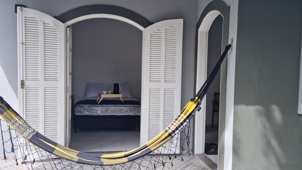 Standard Suite that sleeps 2 people in a double bed, has air conditioning, minibar, tv and private bathroom. It is super cozy and is part of the Pousada Aratuca, a bed and breakfast with a family and quiet environment, with few accommodations just 200 meters from Praia Grande. The Pousada has a large structure with equipped kitchen available to the guests, barbecue, outdoor leisure area with pool, outdoor shower, living room with books and games, coworking and an event room.