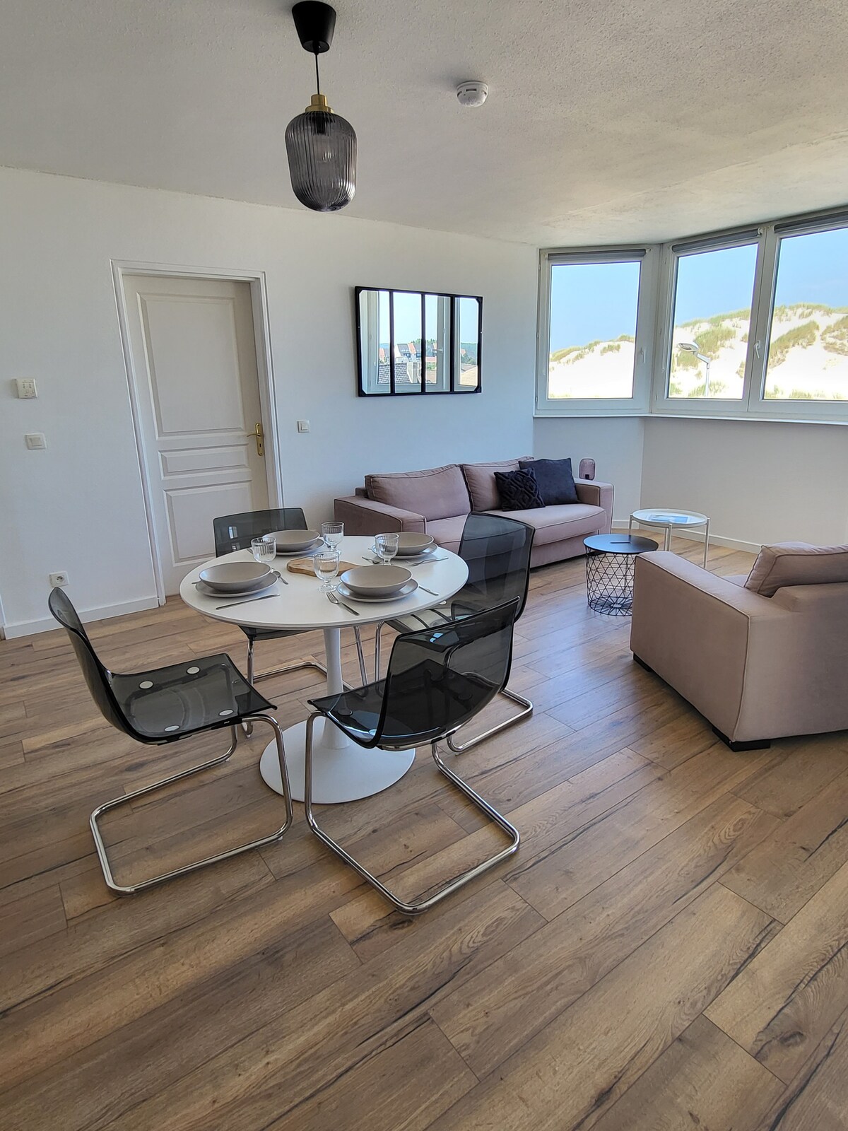 Světlý duplex s vyhrazeným parkovacím místem, který se nachází 1 minutu od pláže (100 m), 2 kroky od vodního centra a jeho aktivit. Nachází se v klidné oblasti, ve 3. a posledním patře (bez výtahu) zabezpečené budovy s krásným výhledem na duny. Veškerý komfort je zajištěn díky kvalitnímu lůžkovinám (1 lůžko 160 × 200 v ložnici a 1 lůžko 90 × 200 na mezipatře), vybavené kuchyni, televizi a wifi. Vaše postele budou ustlané při příjezdu + ručníky. Brzy na shledanou