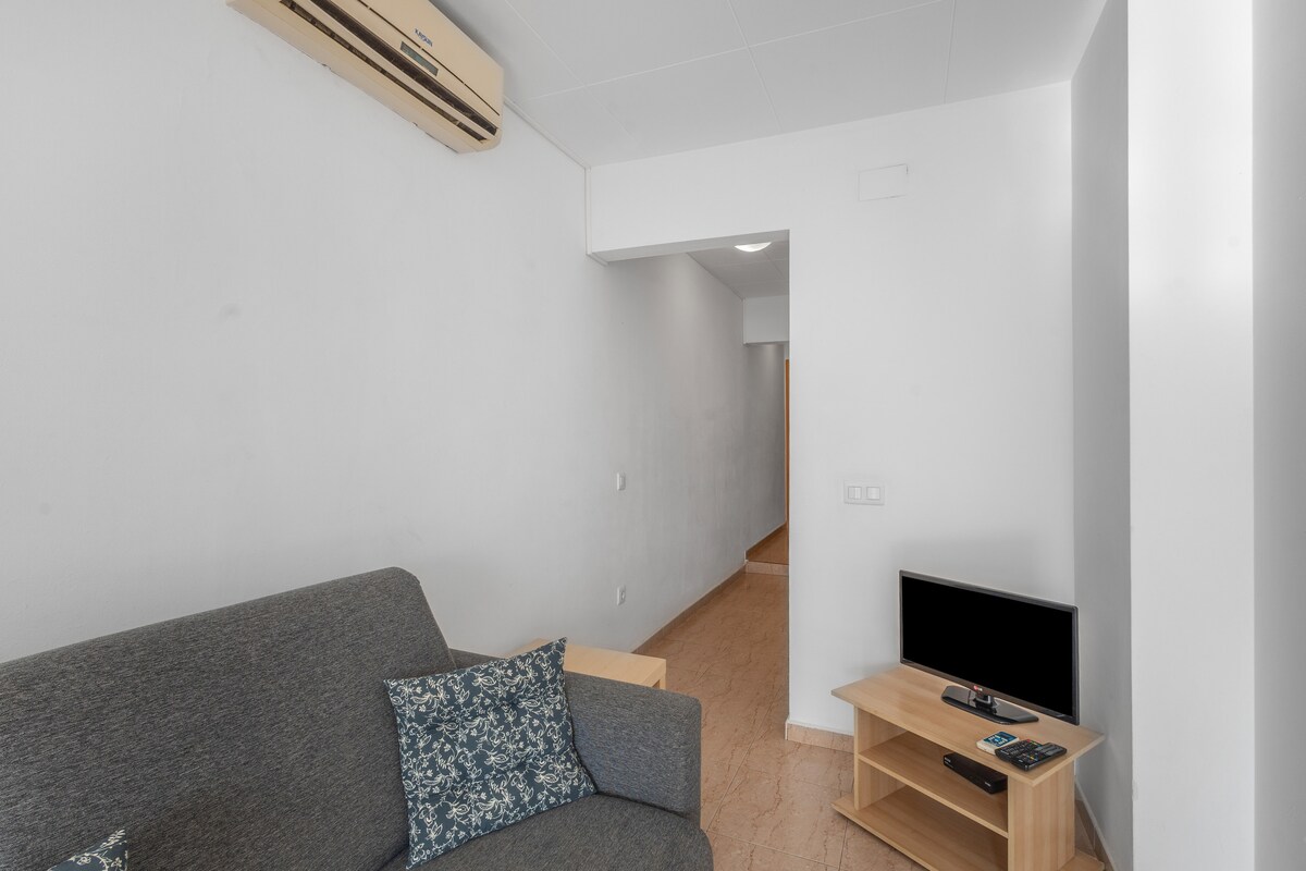 Enjoy a comfortable stay in our apartment for 4, ideal for families or couples. It has a double or twin bedroom, living room with sofa bed, private terrace, fully equipped kitchen, and full bathroom. Includes TV, Wi-Fi, AC, bed linen, and towels. Extras: baby cot €8/night, extra person €25/adult (€12.5/child), extra cleaning €35.