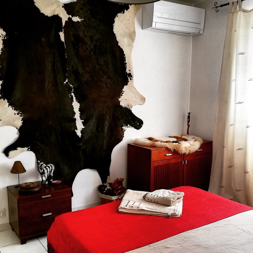 Tento klidný domov nabízí relaxační pobyt pro celou rodinu. 35m2 úrovně zahrady zasazené v srdci nemovitosti o rozloze 20 hektarů na venkově. Nachází se ve východní rovině 7 km od moře. S kapacitou 4 lůžek má samostatnou ložnici, sprchu a obývací pokoj/ kuchyň (vybavenou) s rozkládací pohovkou a klimatizací. Velká krytá terasa se zahradou a otevřeným výhledem, bazén sdílený podle půldenního rozvrhu pro tvůj klid.