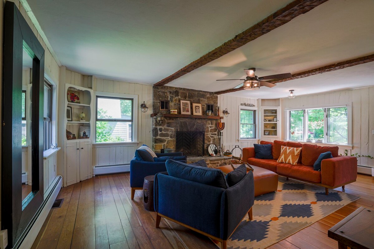 **Summertime access to nearby Queechy Lake beach!** An exceptionally private getaway on 8 beautiful acres near Chatham, NY, this historic barn has been meticulously renovated, including a full chef’s kitchen. It’s one of the area’s most stunning accommodations, ideally located between some of the most picturesque destinations— including the Berkshires, Great Barrington, Taconic State Park, Beebe State Forest, Ooms Conservation Area, Tanglewood, Hudson, Kinderhook, and so much more!