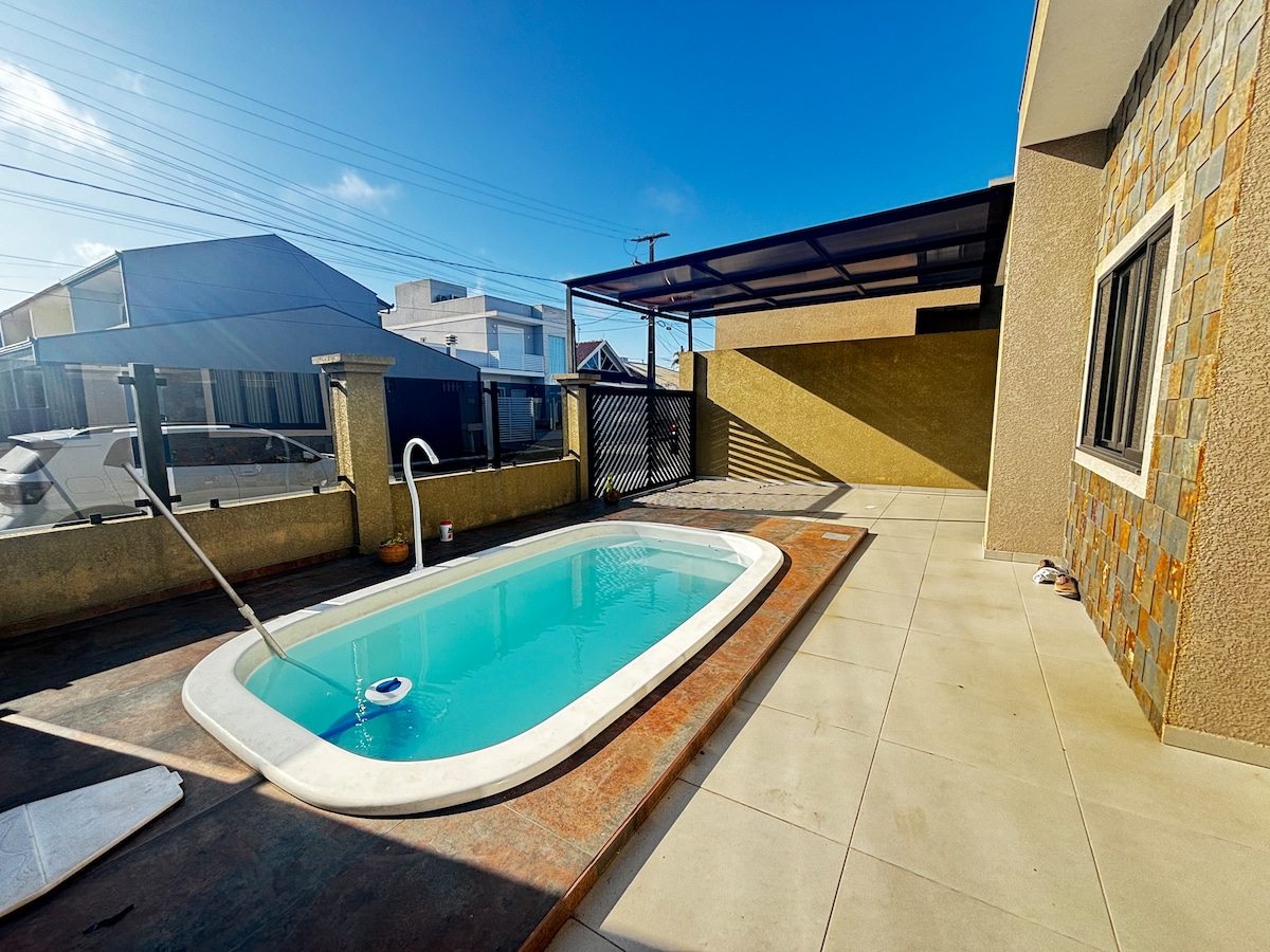 Velký dům s gurmánským prostorem a obrovským bazénem, v blízkosti pláže v Pontal do Paraná. - 5 ložnic - 1 apartmá, 3 ložnice s klimatizací - 3 koupelny (celkem) - Maximálně 20 osob - Pouze 400 m od pláže (4 bloky) - Wifi - Prádelna s pračkou - Plně vybavená kuchyň (2 ledničky, 1 mrazák) - Gurmánská oblast s grilem - Garáž pro 6 aut - Stoly a židle na večírky - Chytrá televize 42" - kulečníkový stůl Přiveď svou rodinu k relaxaci na tomto skvělém místě s dostatkem prostoru pro zábavu.