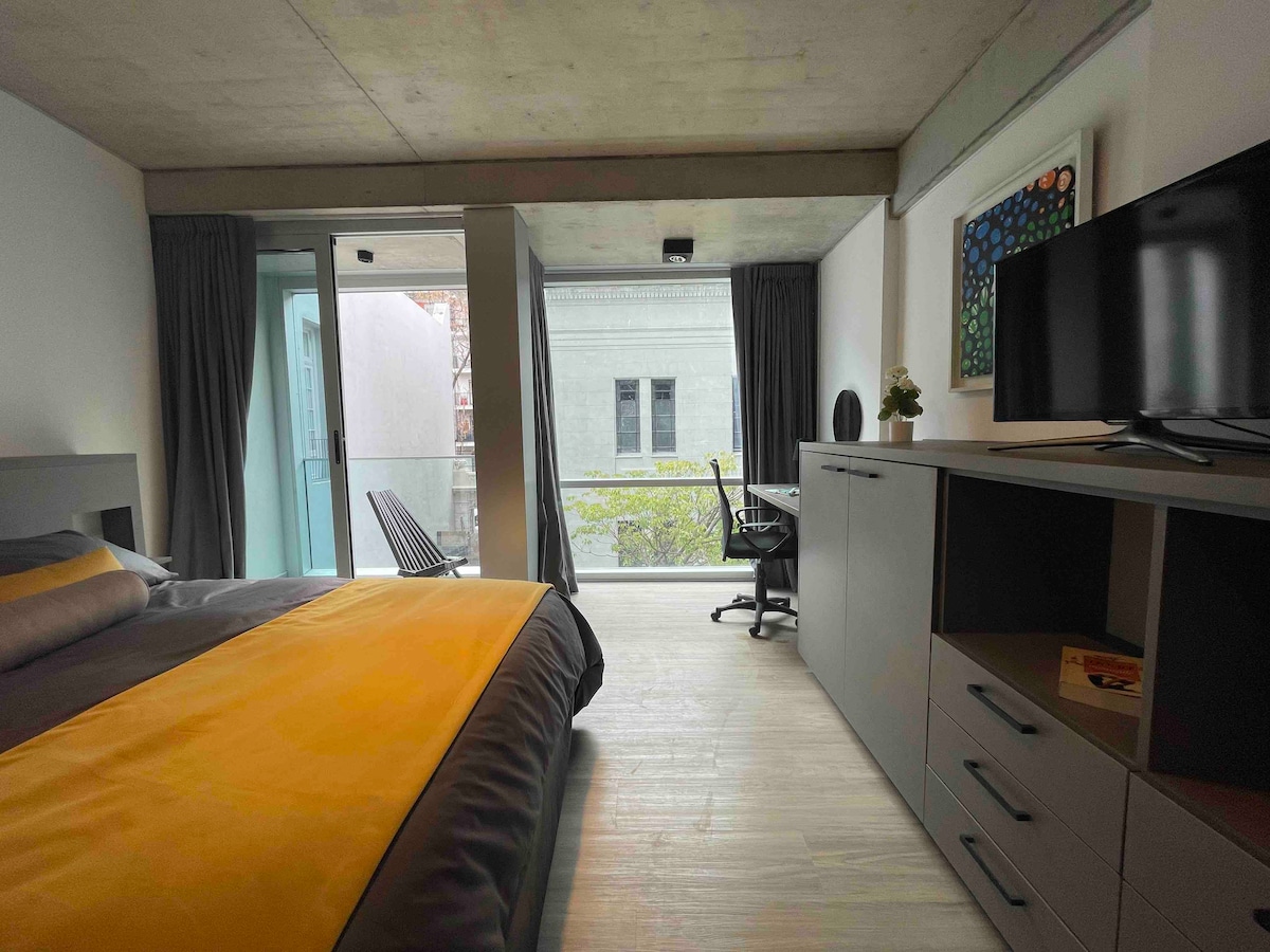 Moderno departamento en edificio a estrenar, súper luminoso y silencioso. Ofrece el mejor confort, cocina integrada y baño completo. Acceso autónomo con cerradura inteligente, más simple y seguro. Ubicación privilegiada: a metros del Subte D, conecta en minutos con el centro histórico y el imperdible Palermo Soho, polo gastronómico y cultural trendy. No se hace check in ni check out el 1 de enero.