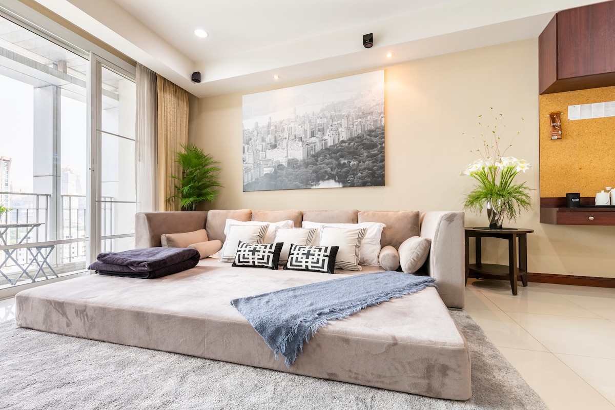 Celé luxusní kondominium, duplexní struktura. Má 2 ložnice, včetně 1,8 m, 1,5 m a 1,2 m velikosti postele; 1 rozkládací pohovku (1,6 m širokou) v obývacím pokoji; a kuchyň. Poskytuji každodenní potřeby podle standardů hotelového apartmánu, včetně kuchyňského náčiní, nádobí, ručníků, osušek, kávovarů, toustovačů atd. Nakonec si můžete vybrat a zůstat v mém bytě. Doufám, že si pobyt v Thajsku užijete.
