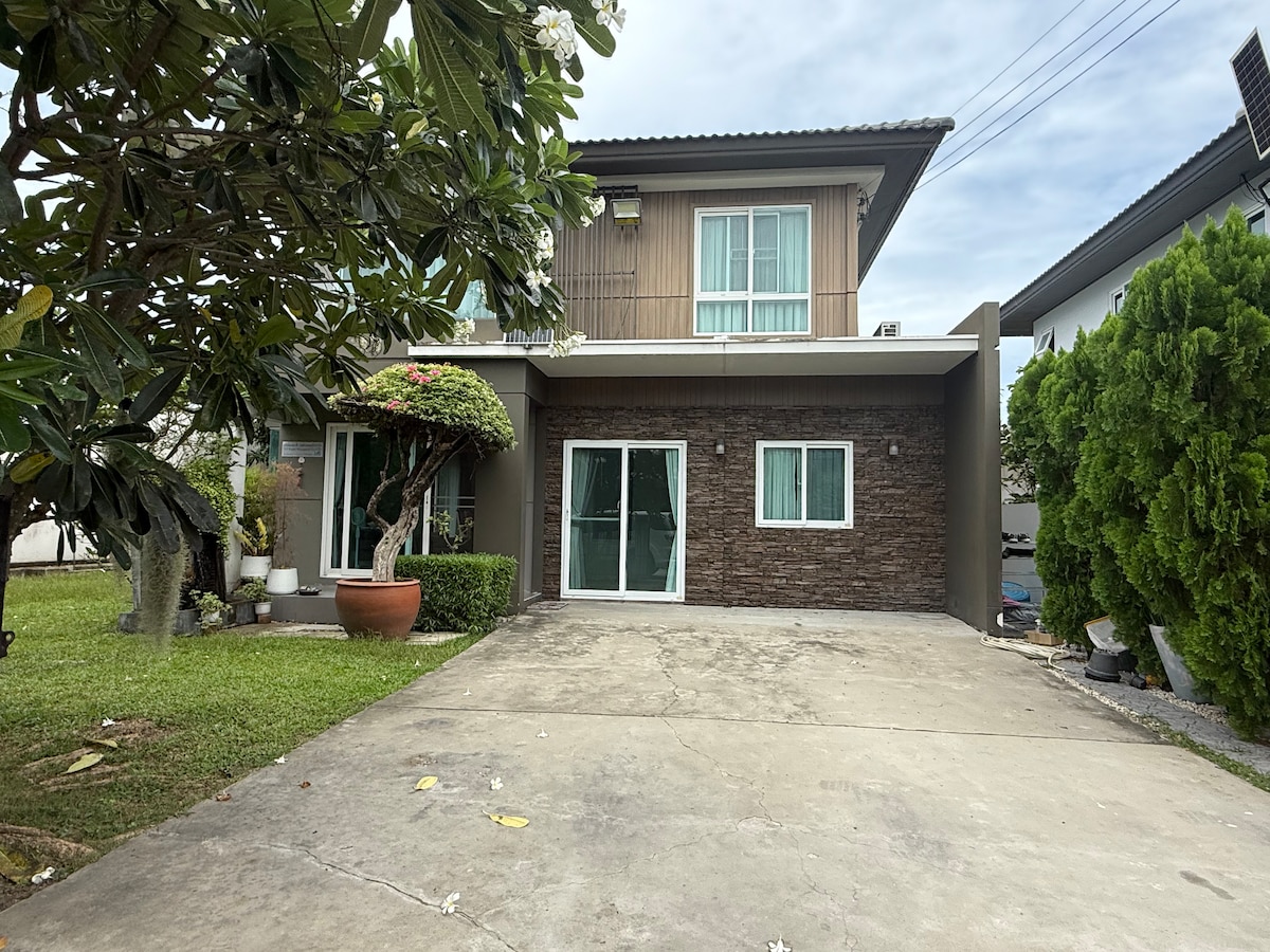 Spacious 3-bedroom home in a peaceful, gated village in West Bangkok. Includes 2 bathrooms, indoor & Thai kitchens, private office, garden, and parking for 4. Near expressways, Central Westgate, and local markets. Access to clubhouse, pool, and green spaces. Perfect for families, long stays, remote work, or relaxing getaways.