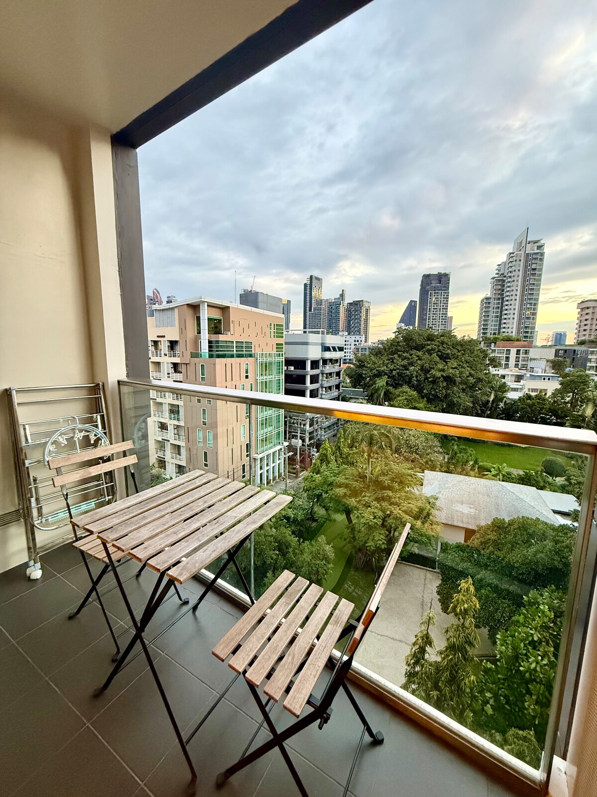 Prostorný celý apartmán s vlastní koupelnou, kuchyňským koutem, obývacím pokojem/jídelnou, 1 ložnicí s vyhrazeným pracovním prostorem a balkonem. Užij si široká okna pro nerušený výhled a dostatek slunečního světla, což zvyšuje vzdušnost pro příjemnější pobyt. Užij si všechny vymoženosti městského života, včetně: - 5 minut na BTS Asok, MRT Sukhumvit - 5 minut na terminál 21, Emporium/Emquartier a Benjasiri Park - 1 min to 7-11 convenient store - Spousta pouličního jídla, kavárny a taxi/kola
