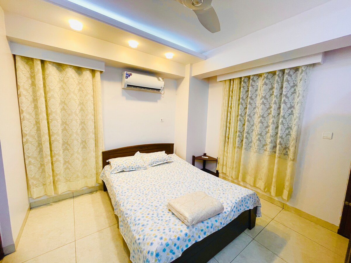 Studiové apartmány jsou nyní v Dháce. Jedná se o samotný byt se soukromým vchodem. Pokoj je plně vybaven moderním vybavením klimatizace, lednicí a chytrou televizí. Otevřená kuchyně s infračerveným hořákem a veškerým vybavením na vaření je k dispozici. K dispozici je malý jídelní stůl, balkon a koupelna s gejzírem atd. Zahrnuli jsme roušky, dezinfekční prostředek a dezinfekci pokojů.