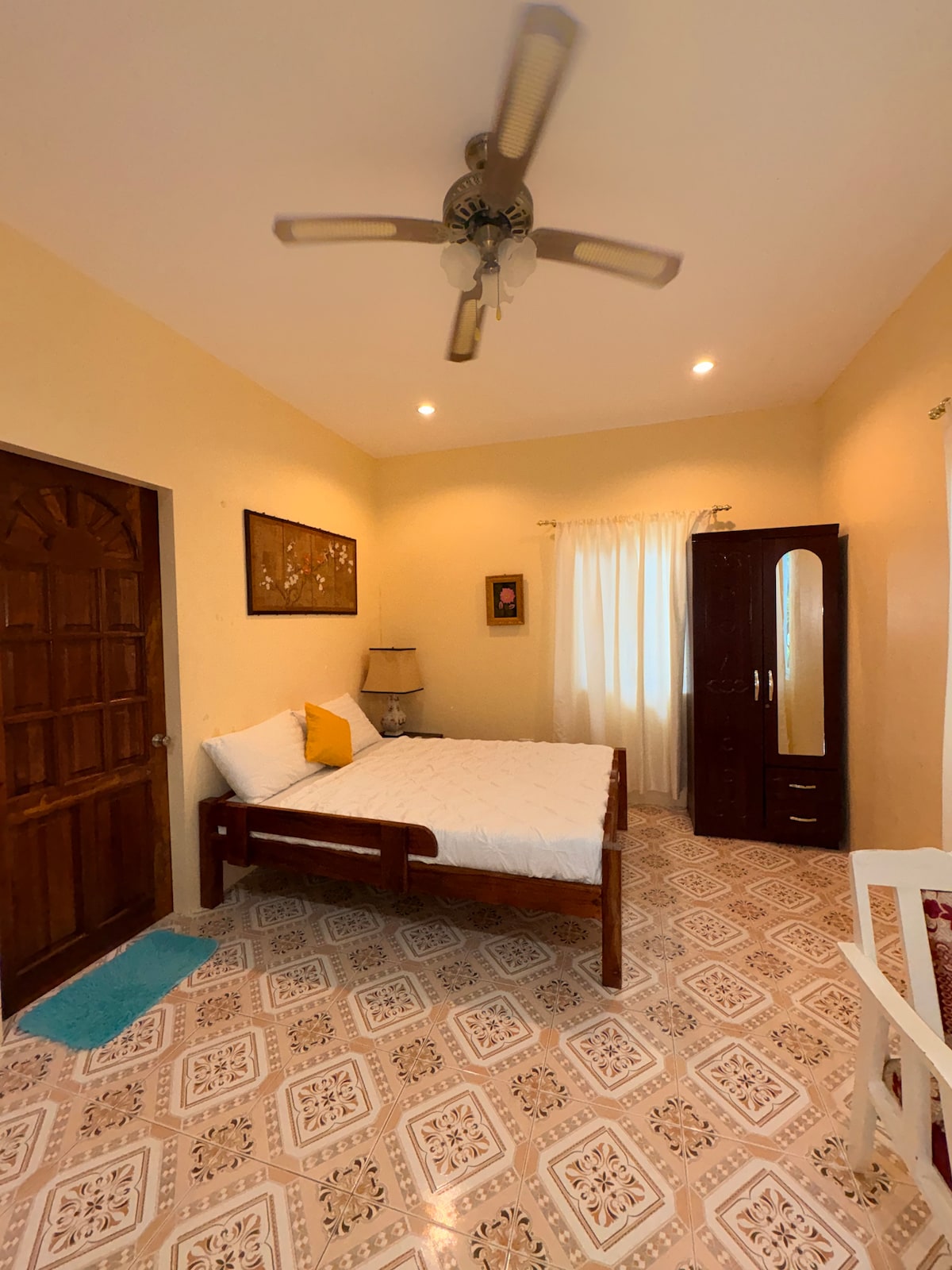 Vychutnej si klid plně zařízeného filipínského domova – prostorného a ideálního pro velké skupiny 8–10 lidí. Nachází se v klidném Pooc Santa Fe, přímo naproti letišti a jen 5–7 minut od pláže, restaurací a nočního života. (Poznámka: Není přímo na pláži, ale jen 10 m od hlavní silnice pro snadný přístup.) Inkluze: – 3 ložnice s klimatizací – 40" TV Netflix – Plně vybavená kuchyně s plynovým sporákem se 2 hořáky – Lednice, rýžovar a ohřívač – Kompletní sada nádobí a kuchyňského vybavení – 2 toalety se sprchovými kouty - Bezplatné otevřené parkování