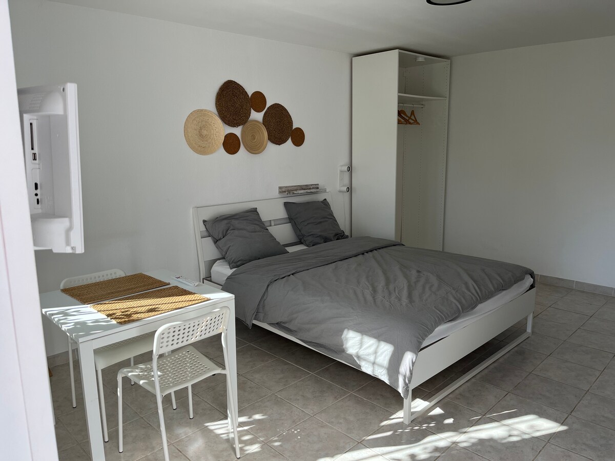 Studio v přízemí, ve stylu motelu, v neprocházné ulici ve velmi klidné čtvrti. Pohodová atmosféra, útulné hnízdečko pro 2 osoby s kuchyňkou, koupelnou se sprchou, WC, manželskou postelí 160. TV TNT Mikrovlnná trouba s grilem, kávovar, konvice, indukční varná deska, lednice, pračka, venkovní prostor se stolem, lavičkou, slunečníky a grilem...