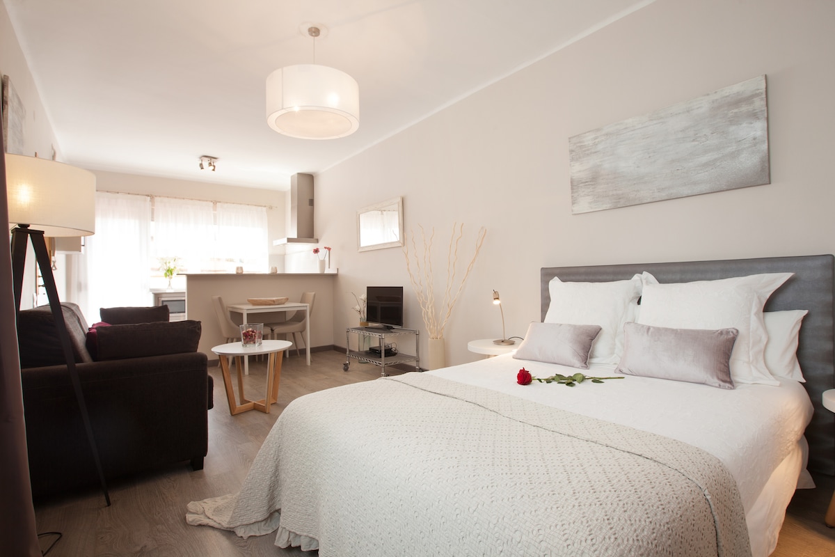 The apartments, delicately restored, have a maximum capacity of two people, are equipped with a queen size bed (1.60 m x 2.00 m) and a sofa. Large windows let in natural light in a quiet urban setting. They have a living-dining room, bedroom, fully equipped kitchen and bathroom with shower. The interior colors convey freshness, tranquility, confidence, well-being, positive energy, stimulate creativity and reading. TOURIST TAX: 6.88€ per night per person, for up to 7 nights (adults only).