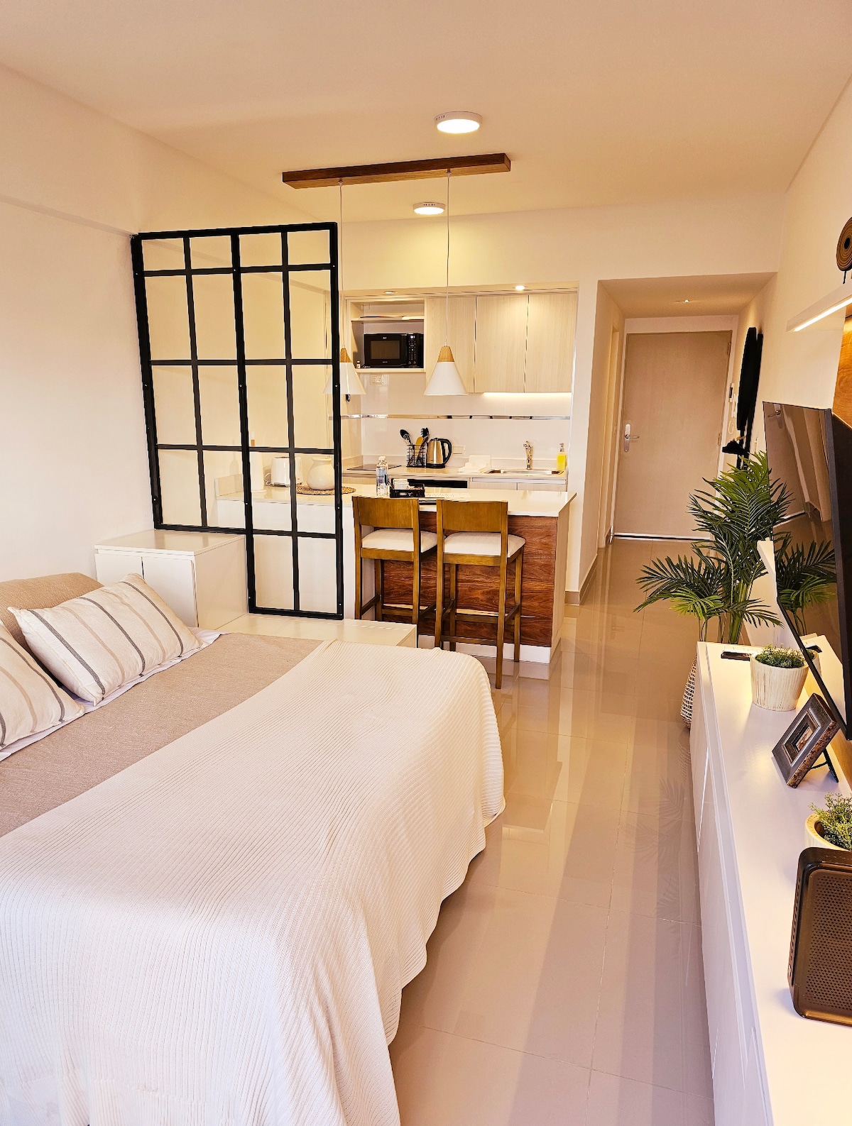 Krásné zbrusu nové studio, plně zařízené s vynikajícím vybavením – 32palcová TV s kabelem/Netflixem, WIFI 100 MB, klimatizace, postel velikosti king, stůl, plně vybavená kuchyně, – v budově ve stylu hotelu s 24hodinovou ostrahou, bazénem, posilovnou, prádelní službou. Nachází se v samém srdci Palermo Soho: 200 metrů od stanice metra D/Plaza Italia (Santa Fe Av.), v blízkosti obchodů, barů, restaurací, nákupních center, parků, muzeí a se snadným přístupem do centra města a mnoha turistických míst!